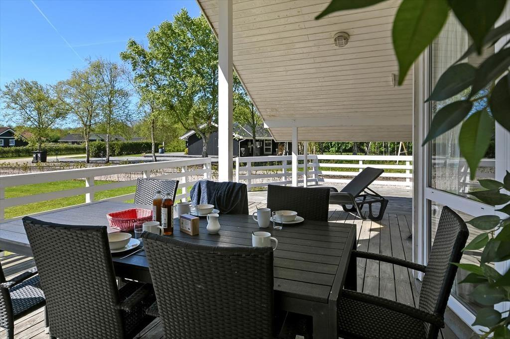 Udendørs venter en dejlig have, hvor du kan nyde solen fra morgen til aften. Den overdækkede terrasse er perfekt til lange grillaftener, hvor du kan mærke den friske luft, lytte til naturens lyde og nyde udelivet i fred og ro. Børnene kan lege på den store græsplæne, mens du slapper af med en kop kaffe eller et glas vin i hånden.