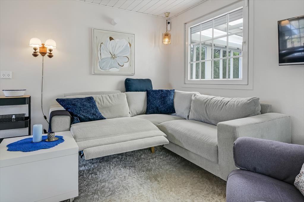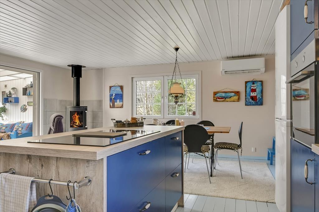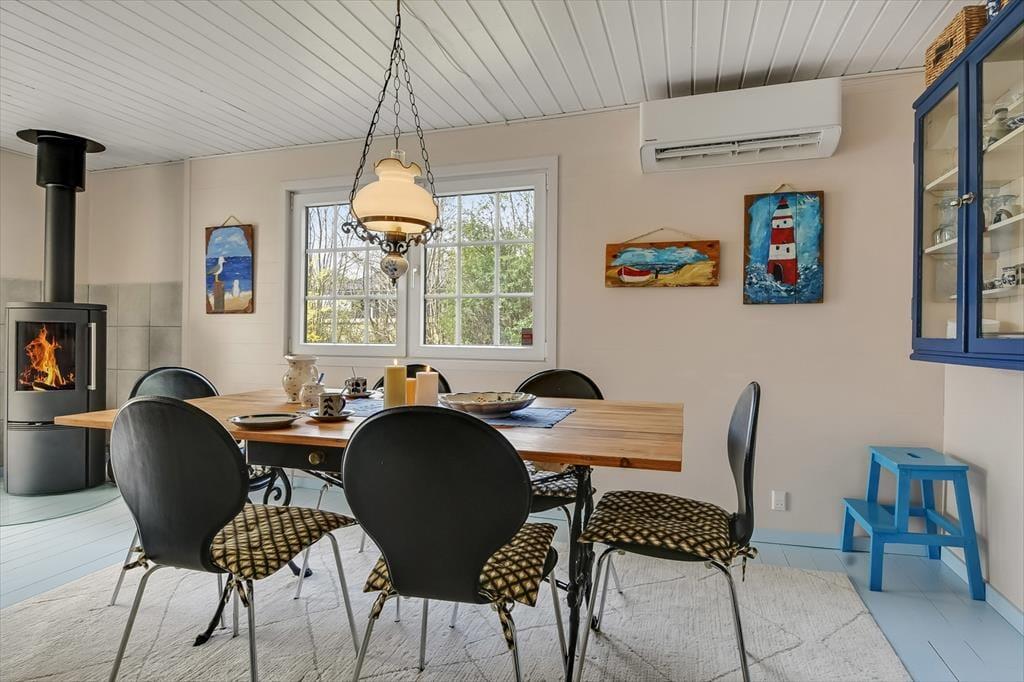 Der er en hjemlig og varm atmosfære i sommerhuset på Mågevænget 17. Indretningen er fuld af fine detaljer og personlige elementer, der med det samme giver dig fornemmelsen af at være landet et sted, hvor der er tænkt på både hygge og funktionalitet. I stuen kan du sætte dig til rette i sofaen og nyde synet af flammerne i brændeovnen, mens duften af aftenens middag breder sig fra det åbne køkken. Hver en krog i huset er udnyttet med øje for både komfort og charme, og du vil hurtigt finde din egen favoritplads – måske i lænestolen med en god bog eller ved spisebordet med udsigt til haven. Soveværelserne er enkelt og hyggeligt indrettede, og om sommeren kan feriegæsterne fordele sig mellem huset og det dejlige anneks, der indbyder til fredelige nætter med åben dør og måneskin i baggrunden.