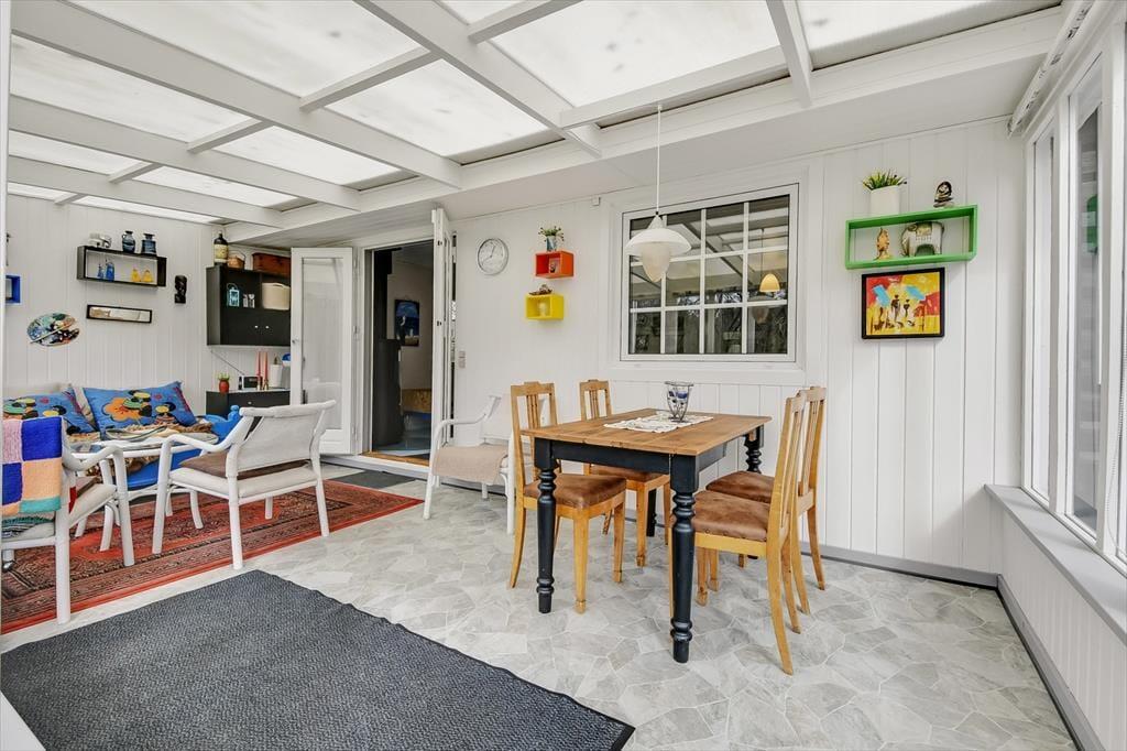Der er noget særligt over at starte dagen med en kop kaffe i morgensolen, mens fuglene synger, og haven langsomt vågner. Det kan du glæde dig til her, for huset ligger i rolige omgivelser, hvor den grønne have er perfekt til afslapning og udeliv. Terrassen inviterer til lange, dovne eftermiddage med kortspil og snakke, og i haven er der god plads til, at hunden kan snuse rundt, mens du nyder stilheden og det høje himmelrum. Når solen står højt, og grillen dufter af sommer, kan du slå dig ned med familien og nyde måltider i det fri – og om aftenen, når duggen falder, kan du trække tæppet op over benene og se dagen ebbe ud med stjernerne som selskab.
