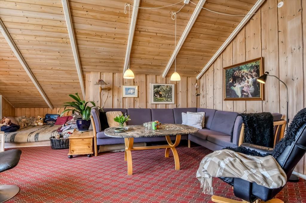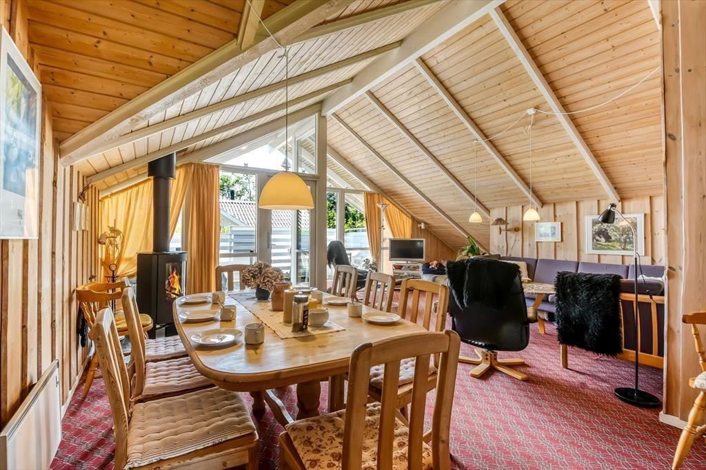 Fra det øjeblik du træder ind i sommerhuset, mærker du en hjemlig varme og en helt særlig atmosfære, der indbyder til afslapning og samvær. Indretningen kombinerer det lyse og luftige med charmerende detaljer og hyggelige kroge, hvor du kan smække benene op med en god bog, spille kortspil med børnene eller bare nyde den ro, som kun ferie kan give. Stuen og køkkenet ligger i åben forbindelse, så snakken kan gå over gryderne, og den afslappede stemning breder sig naturligt i hele huset. Her er plads til at være sammen – og plads til at trække sig tilbage. Uanset om du nyder morgenkaffen i fred og ro eller en hyggelig spilleaften med familien, så danner sommerhuset de perfekte rammer om det gode ferieliv.