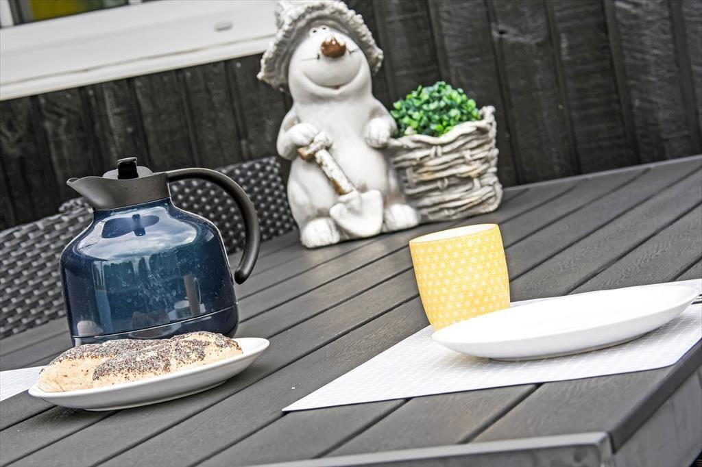 Sommerhusets store have indbyder til leg, spil og ren afslapning under åben himmel. Her kan børnene få timer til at gå på gyngestativet eller tage en tur ned ad rutsjebanen, mens de voksne nyder solen i en liggestol eller finder ro i en god bog. Haven er grøn og rummelig, og på terrassen kan spiser lækker mad og nyde duften af sommerens favoritter, mens aftenen falder på. Når duggen lægger sig, er det oplagt at trække et tæppe om skuldrene og blive siddende lidt længere under den klare stjernehimmel. Udearealerne er skabt til, at alle – store som små – kan nyde feriedagene på deres helt egen måde, hvad enten det er gennem leg, hyggelige snakke eller ren afslapning.