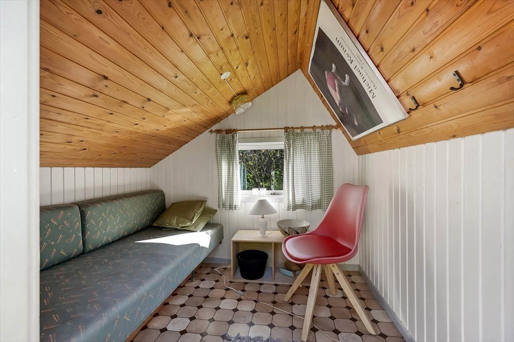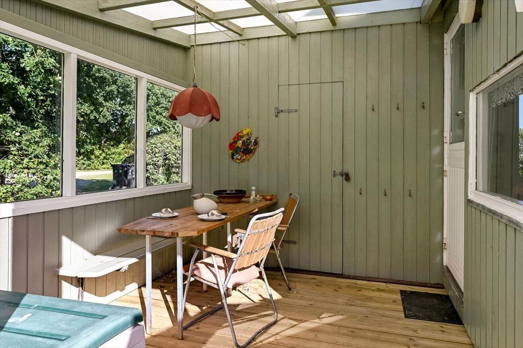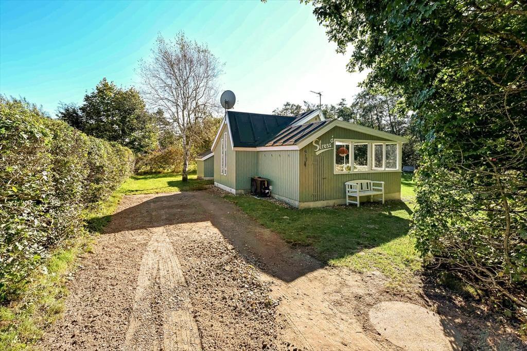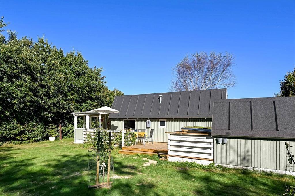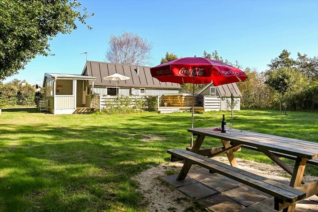 Sommerhuset på Horsfold 39 har en helt særlig styrke: Udearealerne. Her får du en fredelig have, hvor fuglesang og sus i trætoppene udgør baggrundsmusikken til feriedagene. Den nye træterrasse fra 2025 giver en fantastisk ramme om alt det, man forbinder med sommerhuslivet – fra rolige morgener med friskbrygget kaffe til lune aftener med lækker mad, og tiden står lidt stille. Terrassen er placeret, så du både kan finde sol og skygge i løbet af dagen, og med den dejlige og overdækkede hyggekrog får man lyst til at bruge hele dagen udenfor. Haven indbyder til afslapning i et helt roligt tempo. Måske finder børnene et favoritspot til leg på græsset, eller måske forsvinder I bare alle ind i den særlige sommerferiestilhed, som kun en velafskærmet have kan give.