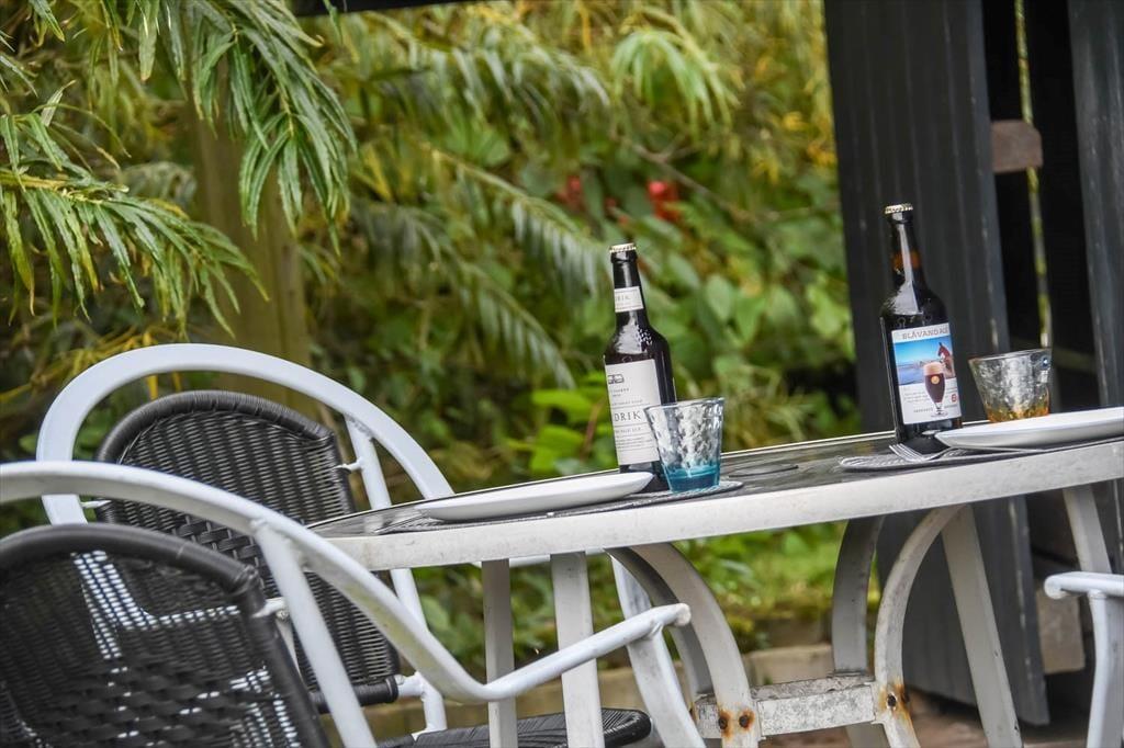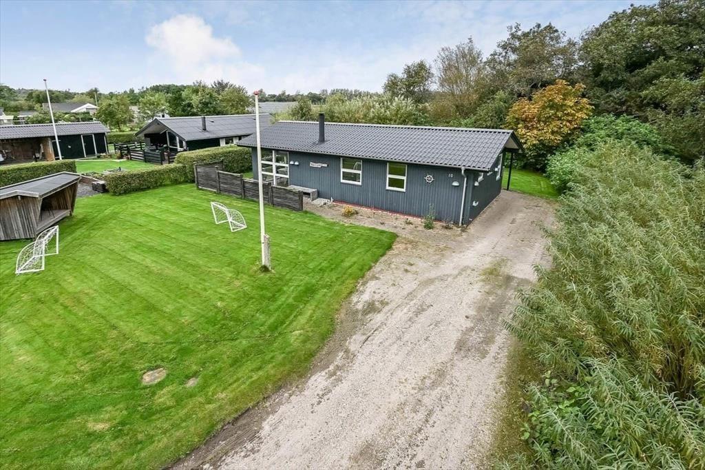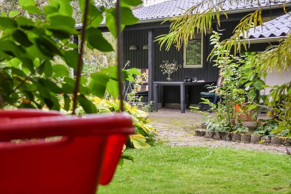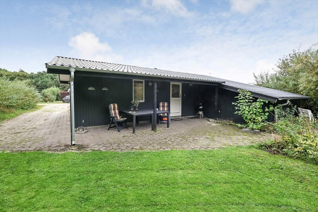 Udenfor venter en skøn have, der indbyder til både afslapning og små eventyr. Terrassen ligger perfekt til dagens rolige stunder – fra morgenkaffen i solen til aftensmaden, der bliver lidt ekstra hyggelig, når den nydes i den friske vestjyske luft. Haven har både grønne kroge, hvor du kan sidde i læ og lytte til fuglesang, og gode områder til leg og boldspil. Et af sommerhusets fineste detaljer er det hyggelige shelter, der står klar til de feriegæster, som vil prøve at sove under åben himmel, når vejret er til det. Her ligger den helt særlige ro, der kun findes i et sommerhusområde tidligt om morgenen – med let dug i græsset og lyden af fjorden i det fjerne. Det giver ferien et ekstra strejf af nærvær og natur.