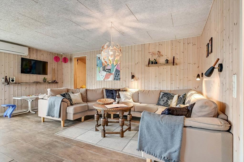 Når du træder indenfor i sommerhuset på Horsfold 10, mødes du af et dejligt opholdsrum, hvor stue og spisestue smelter sammen og skaber et lyst, imødekommende centrum for hele ferien. Her er plads til at spille spil, snakke til langt ud på aftenen eller bare synke ned i sofaen med en god film. Den moderniserede indretning giver rummene en harmonisk, afslappet atmosfære, og de tre soveværelser er fordelt, så alle kan trække sig tilbage og få en god nats søvn efter en dag fuld af oplevelser. Overalt fornemmer du, at huset er sat i stand med omtanke – her er nemt at falde til, og feriestemningen melder sig hurtigt.