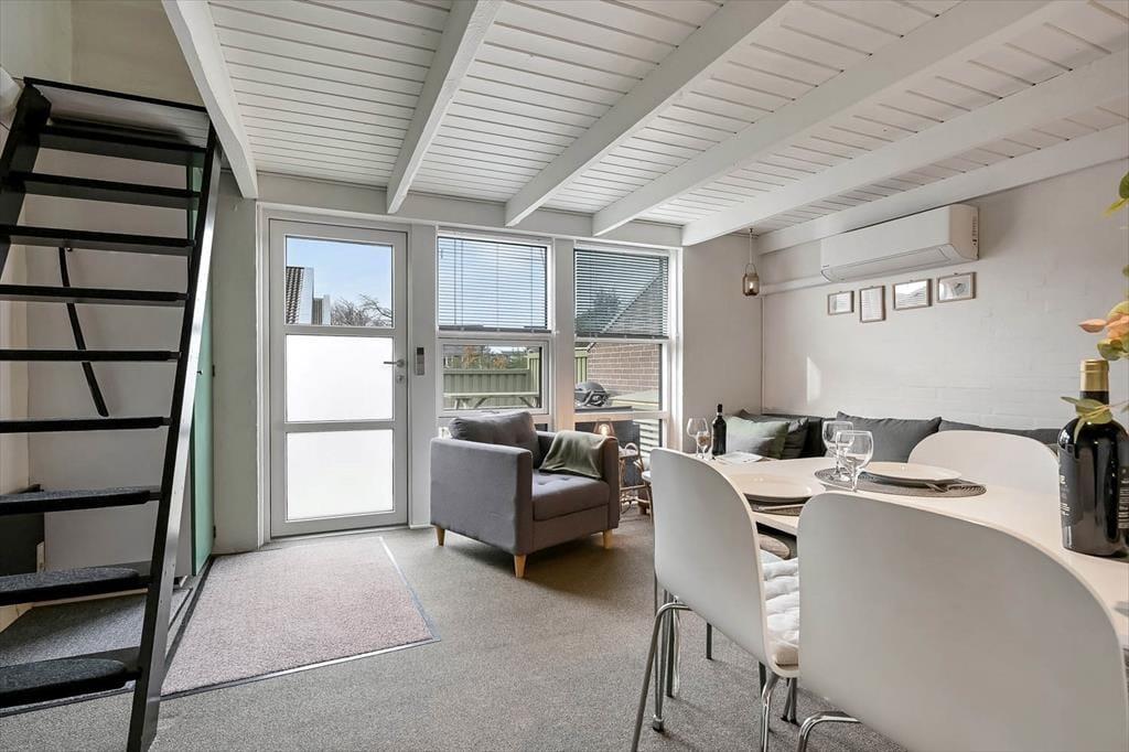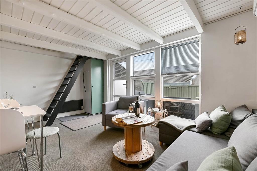 Når du træder ind i ferielejligheden, mødes du af en lys og rar atmosfære, hvor feriestemningen hurtigt falder på plads. Indretningen er enkel og hyggelig, og du vil hurtigt finde dine egne små yndlingssteder – hvad enten det er sofahjørnet, hvor du kan lade roen sænke sig efter en frisk gåtur langs Ringkøbing Fjord, eller spisepladsen, hvor dagens måltider indtages, mens snakken går frit. Her er god plads til, at fire personer kan nyde hverdagen langt væk fra hverdagens travlhed, og det er nemt at skabe rammerne for både afslapning og nærvær. På de stille morgener kan du lade døren stå på klem og høre fuglene synge udenfor, mens du gør klar til endnu en dejlig feriedag i Bork Havn.