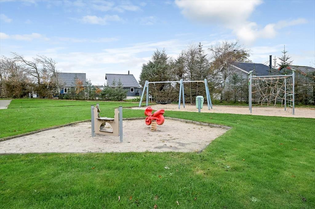 Ferielejlighedens indhegnede terrasse er et af stedets helt store plusser, særligt for jer, der har hunden med på ferie. Her kan familiens firbenede ven bevæge sig frit, mens I andre slapper af med en kop kaffe og mærker solen varme kinderne. Terrassen er et skønt sted at nyde dagens rolige stunder – fra morgenens første lys til de lange, lyse sommeraftener. Udenfor lige ved lejligheden ligger en offentlig legeplads, som helt sikkert vil vække begejstring hos de yngste gæster. De kan løbe direkte ud for at lege, mens de voksne følger med fra terrassen eller bare nyder roen i det grønne område omkring lejlighedskomplekset. Når vejret kalder på vandpjask, ligger svømmehallen blot få skridt væk, og som gæst har du fri adgang til bassinerne, der er forbeholdt lejlighedernes gæster.