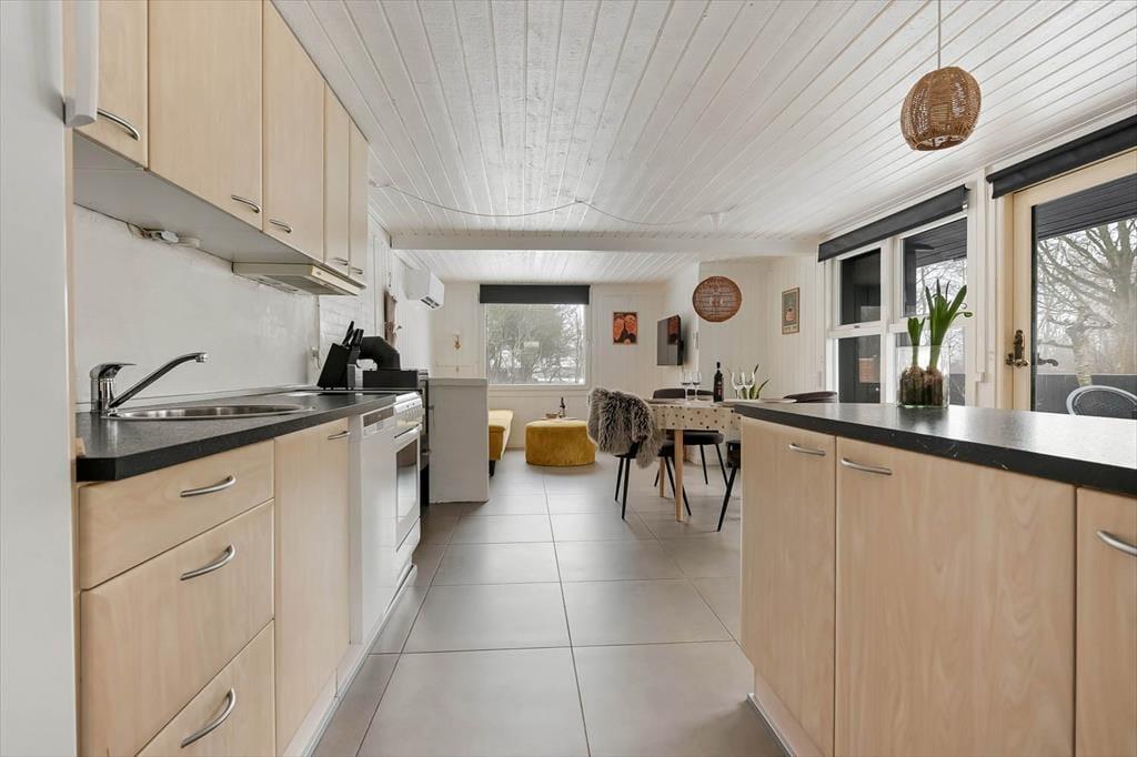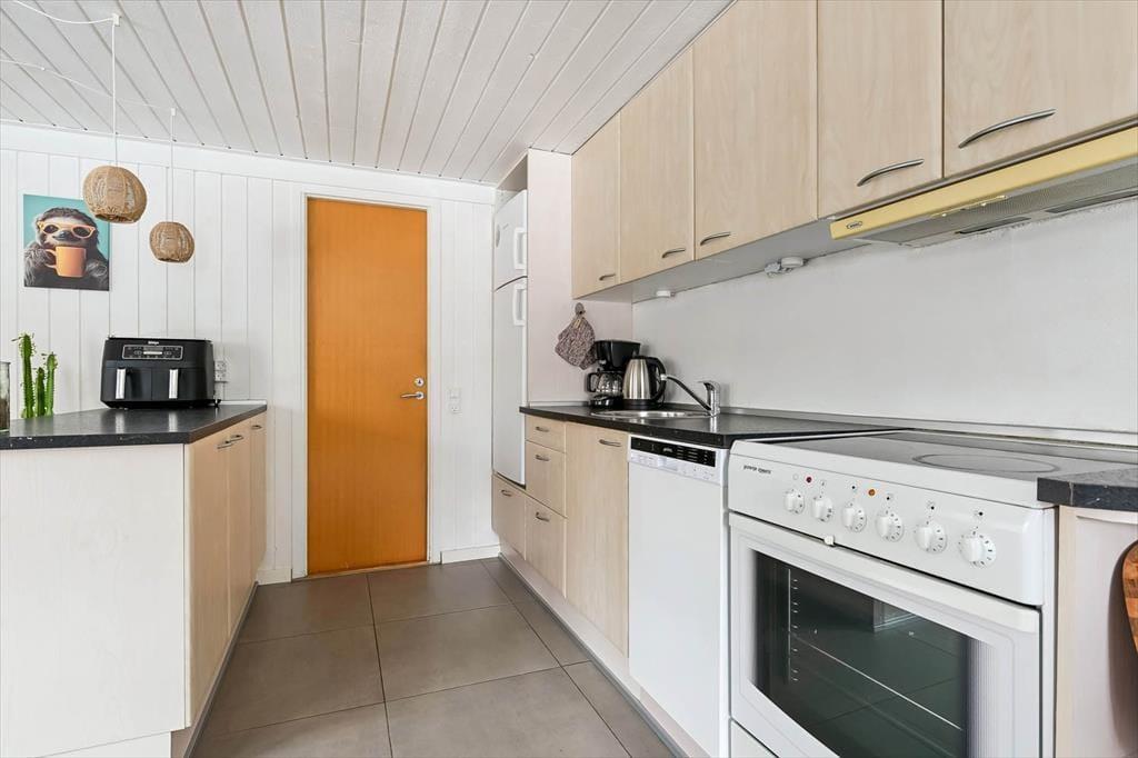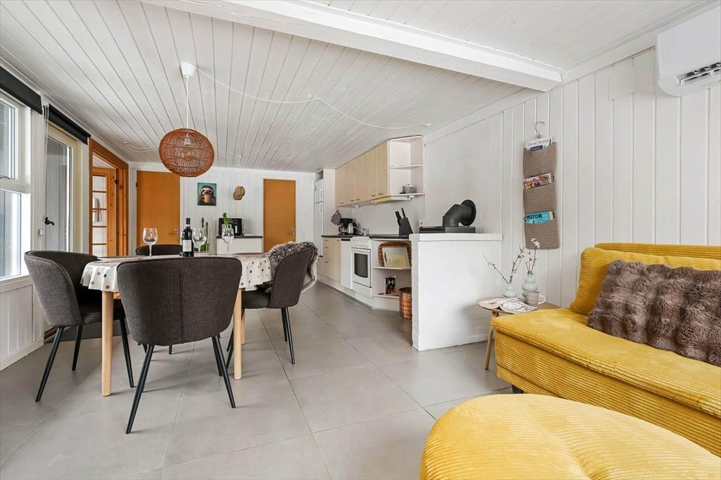 Hyggeligt sommerhus i Bork Havn med brændeovn, opvaskemaskine og gratis adgang til lokale aktiviteter.