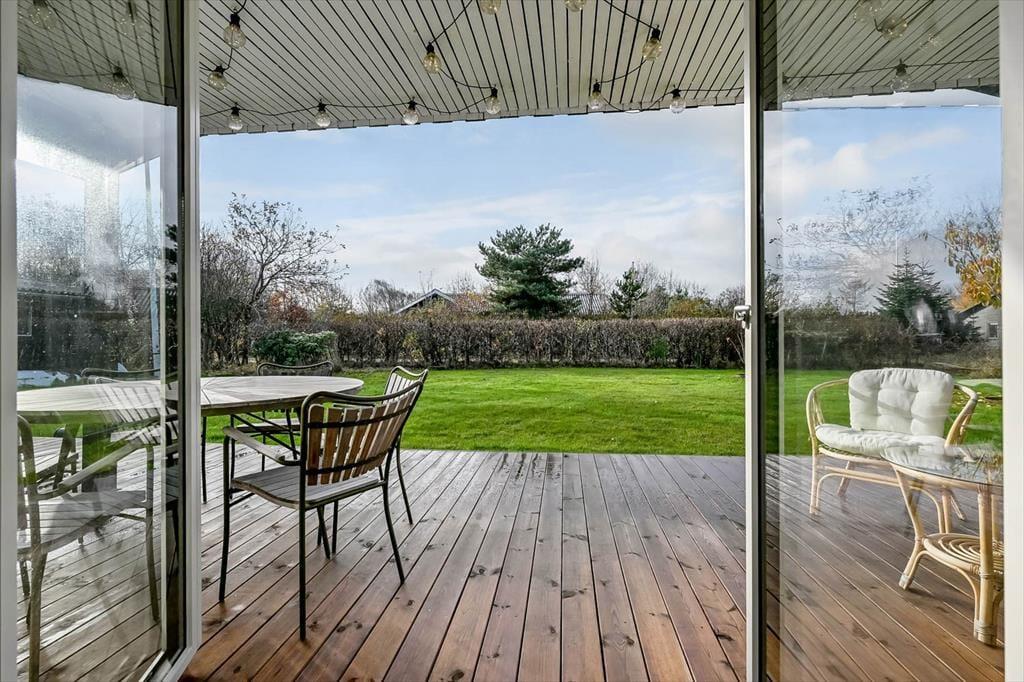 Fra stuen har du direkte udgang til en skøn terrasse, og den vil uden tvivl blive et af de steder, du kommer til at opholde dig allermest. Terrassen ligger perfekt i læ af huset og er ideel til alt fra lange morgener med friskbrygget kaffe til sommeraftener, hvor temperaturen holder sig blid og behagelig. Lyset strømmer ud gennem det store vinduesparti og binder ude og inde smukt sammen – en detalje, som gør det let at glide ud på terrassen, så snart solen viser sig.