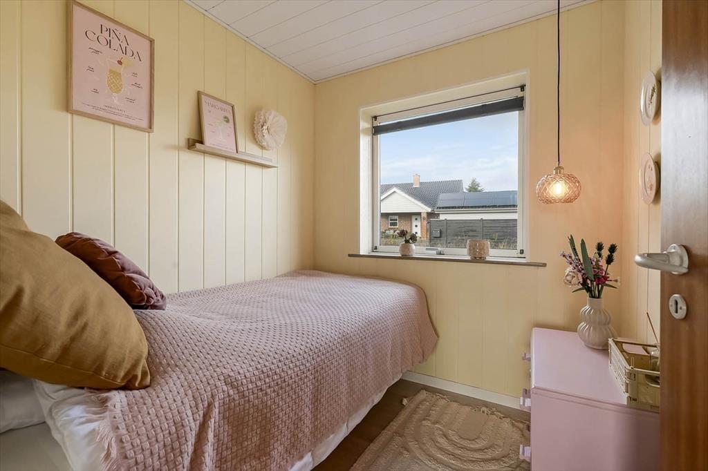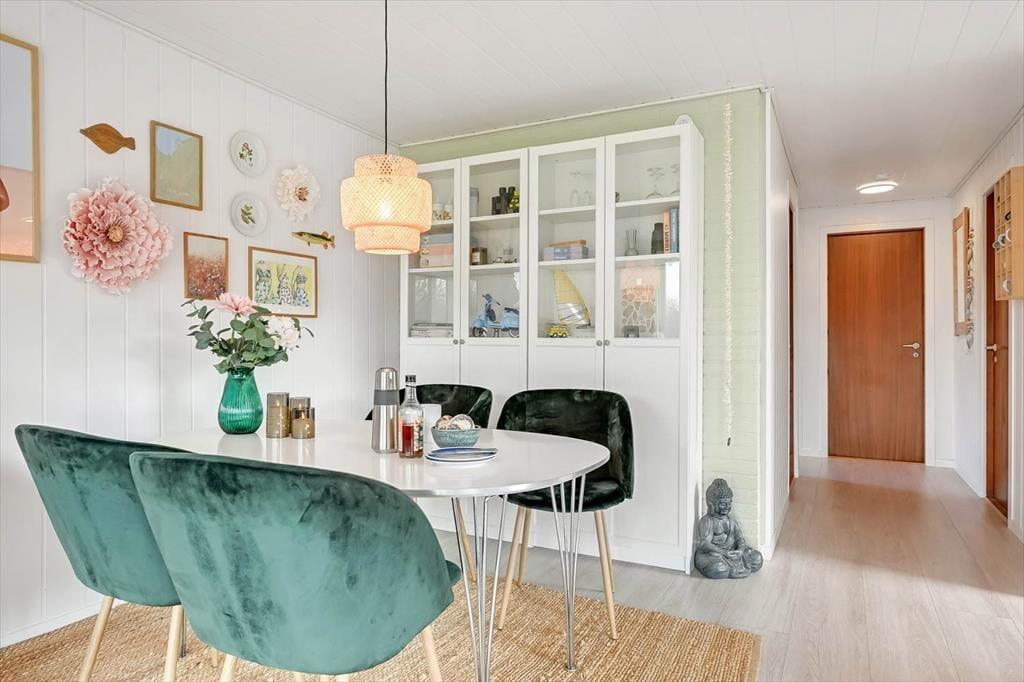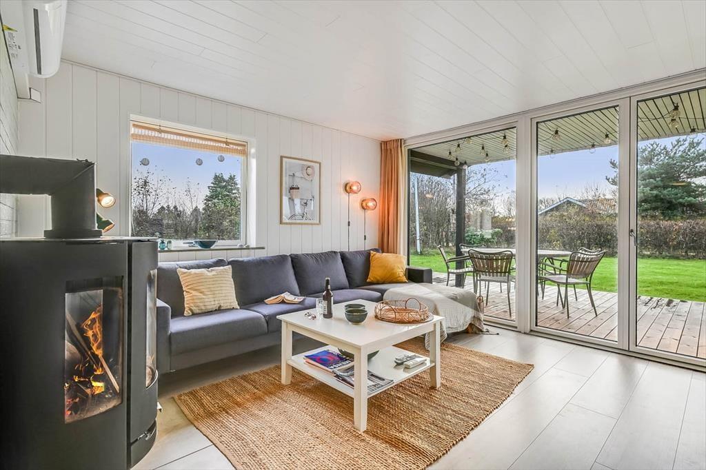 Når du træder ind i sommerhuset, bliver du mødt af en indretning, hvor intet er overladt til tilfældighederne. Huset er nyistandsat i 2025 og fremstår derfor både friskt, stilrent og gennemført – men uden at miste sin særlige sommerhuscharme. Stuen er det naturlige samlingspunkt med et stort vinduesparti, som inviterer dagslyset helt ind og giver rummet en rolig og behagelig atmosfære. Her kan du mærke en langsom ferietakt sænke sig, mens du lader blikket glide ud mod terrassen og de grønne omgivelser.