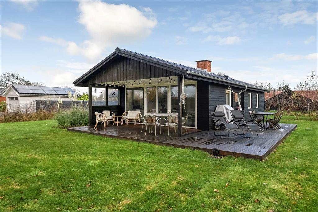 Grunden omkring huset er fredelig og grøn, og atmosfæren er lige så rolig, som man håber på under et ophold i Bork Havn. Terrassen indbyder til middage, kortspil, solbadning eller blot en stille stund, hvor du kan høre fuglene i området og mærke ferien helt ned i skuldrene. Hundene har også god plads til at snuse rundt og være en del af familielivet.
