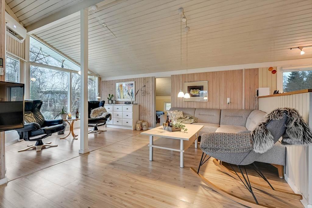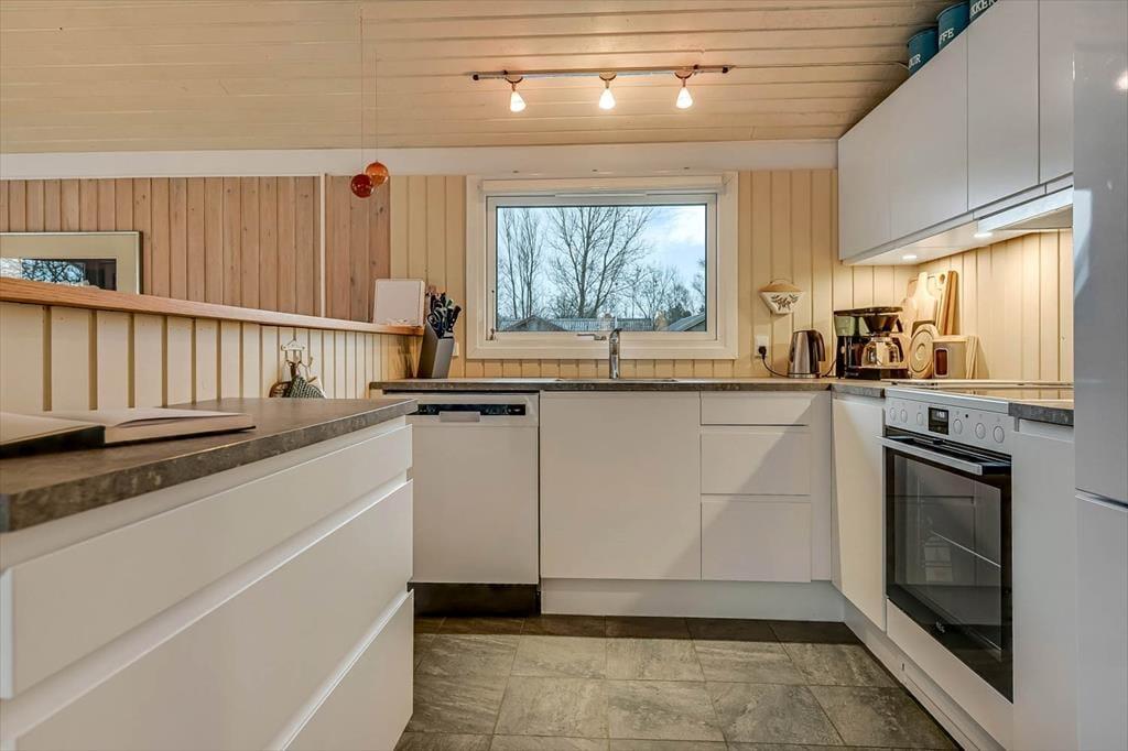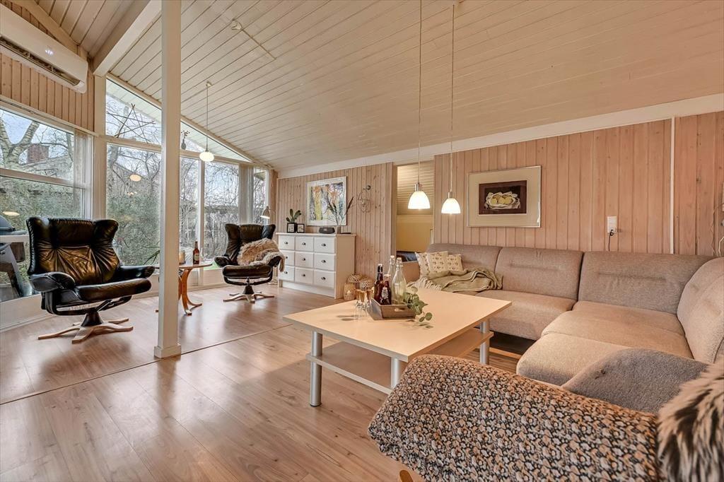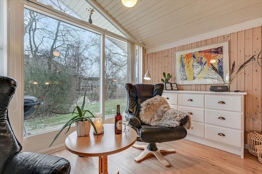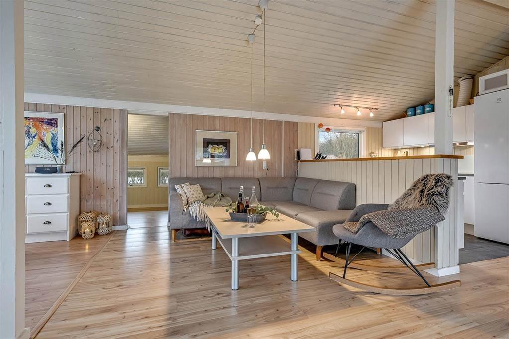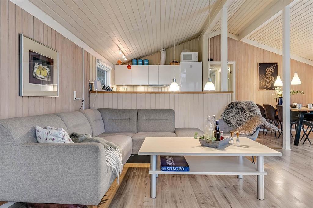 Hyggeligt sommerhus i Bork Havn med brændeovn, internet og direkte adgang til strand og indkøb.