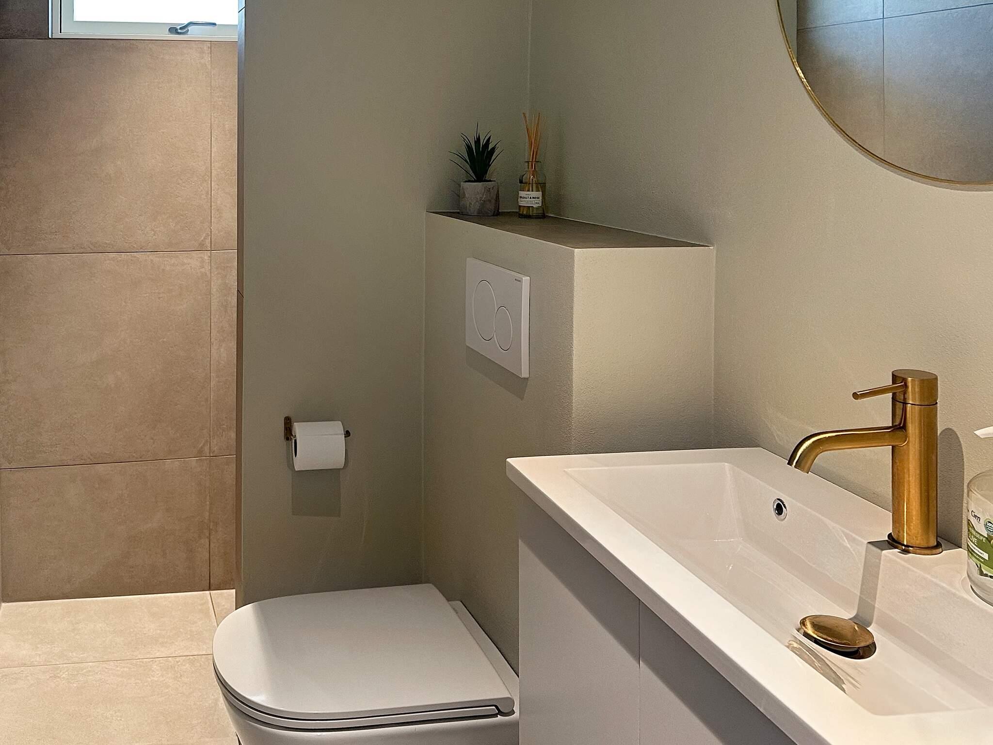 Bad/wc: Wc, håndvask, bruseniche, gulvvarme