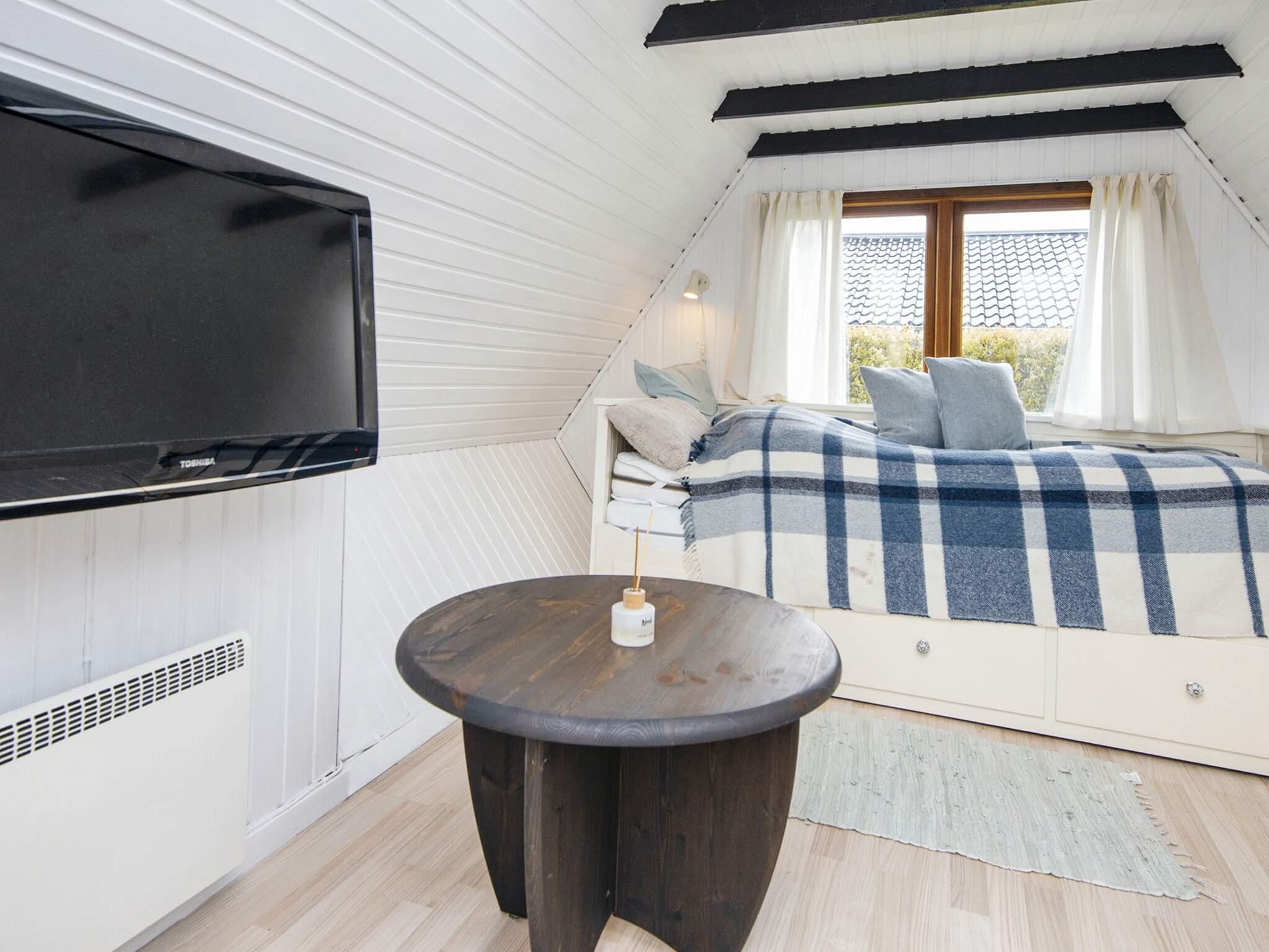 Det største soveværelse byder på en dobbeltseng og rigelig opbevaringsplads, mens det mindre soveværelse har en kort seng, perfekt til børn. For ekstra fleksibilitet inkluderer et separat anneks i nærheden en dobbeltseng, et fjernsyn og en håndvask, hvilket giver ekstra komfort og privatliv for gæsterne.