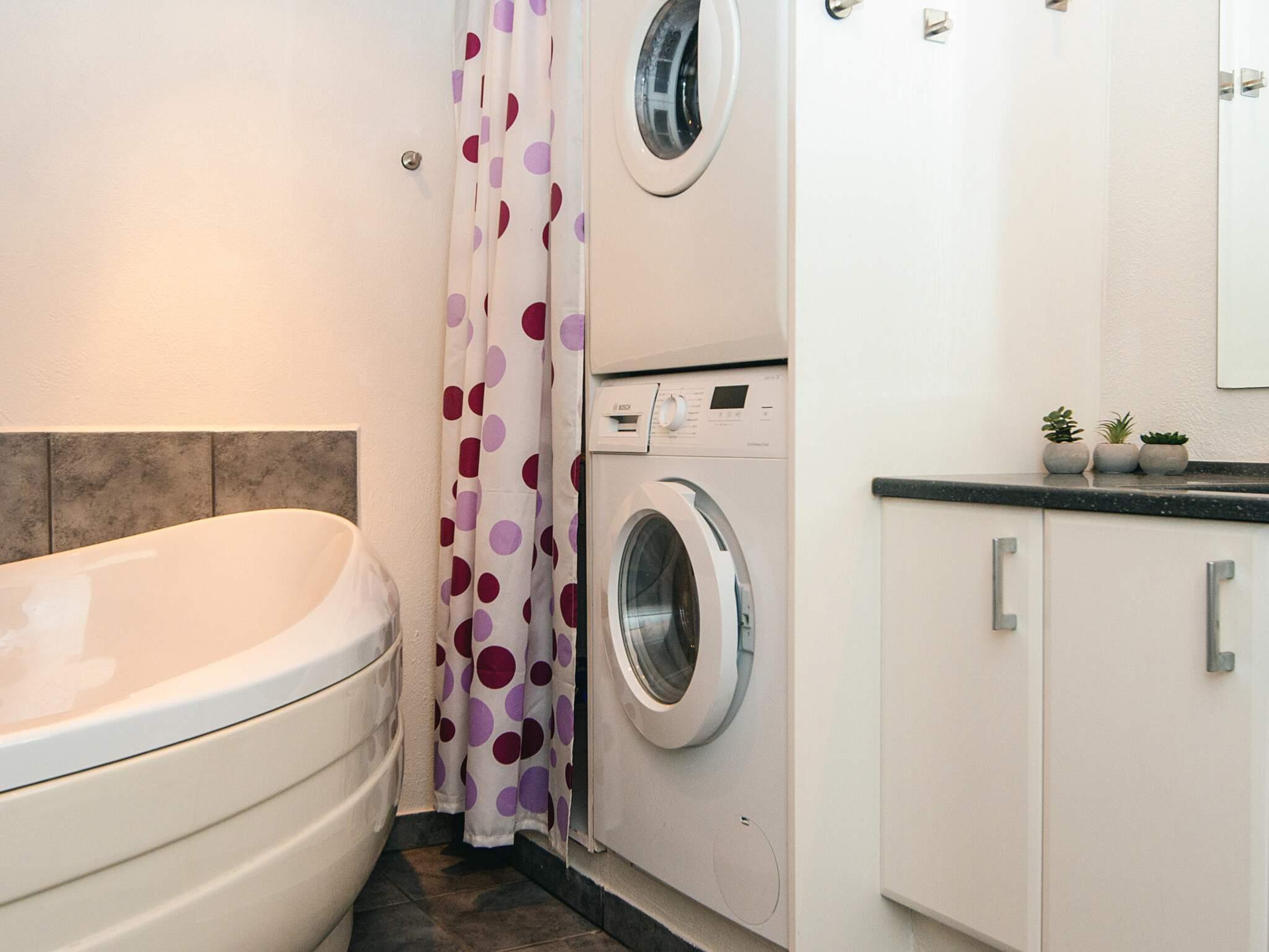 Køkken: El-komfur, køle-frys, mikroovn, kaffemaskine, opvaskemask.