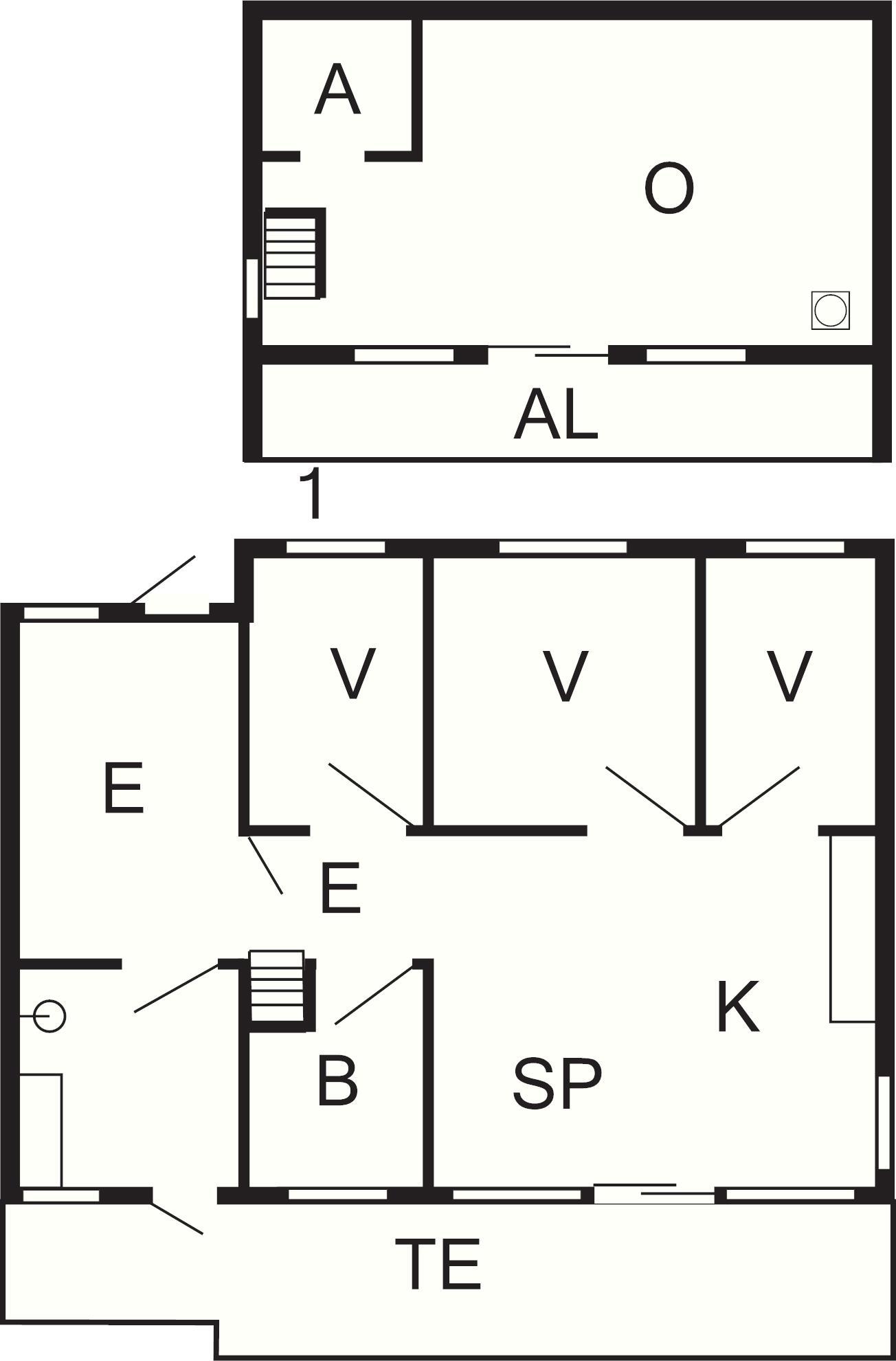 1 Opholdsstue: 21 m2, brændeovn, stereoanlæg med cd, dvd-afspiller, tv, parabol