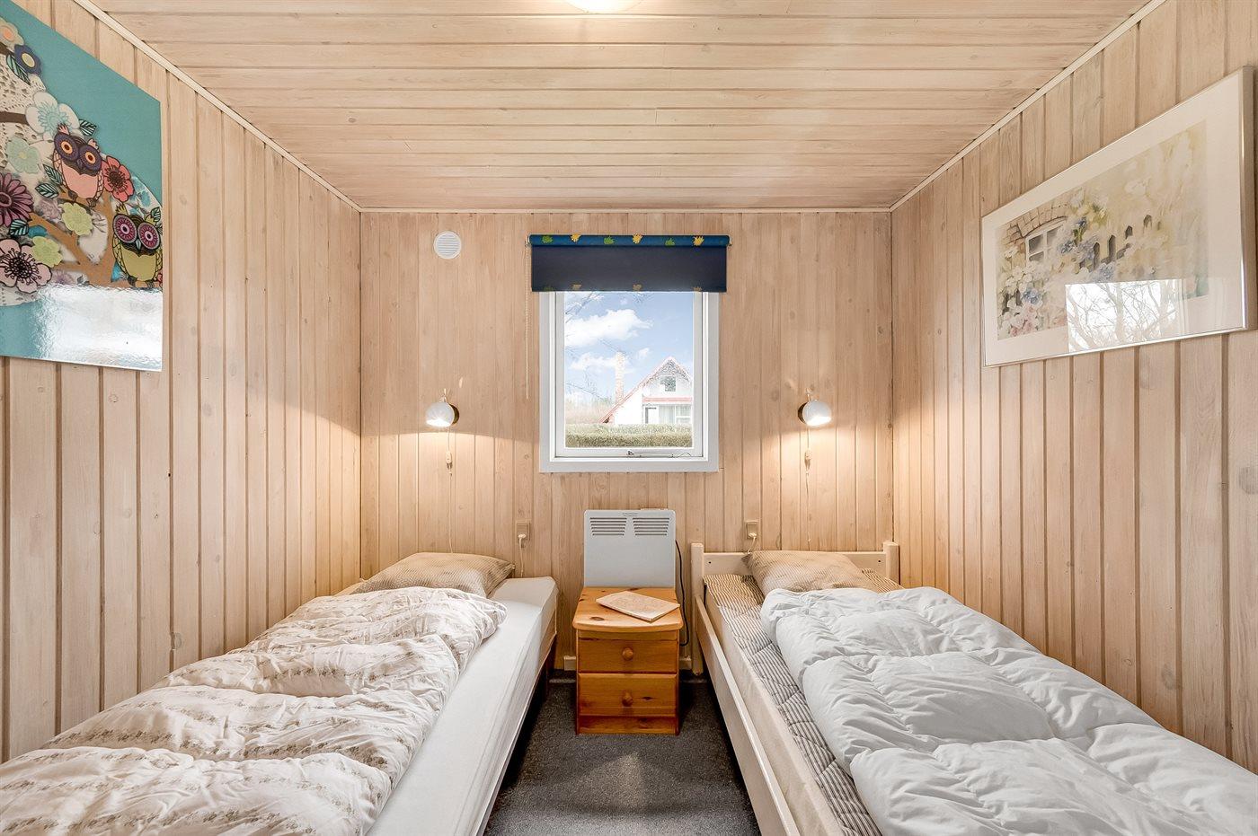 Der er i alt 3 soveværelser. Sovepladserne fordeler sig på: 4 sovepladser i dobbeltsenge. 2 sovepladser i enkeltsenge. Derudover er der 1 stk. barneseng.