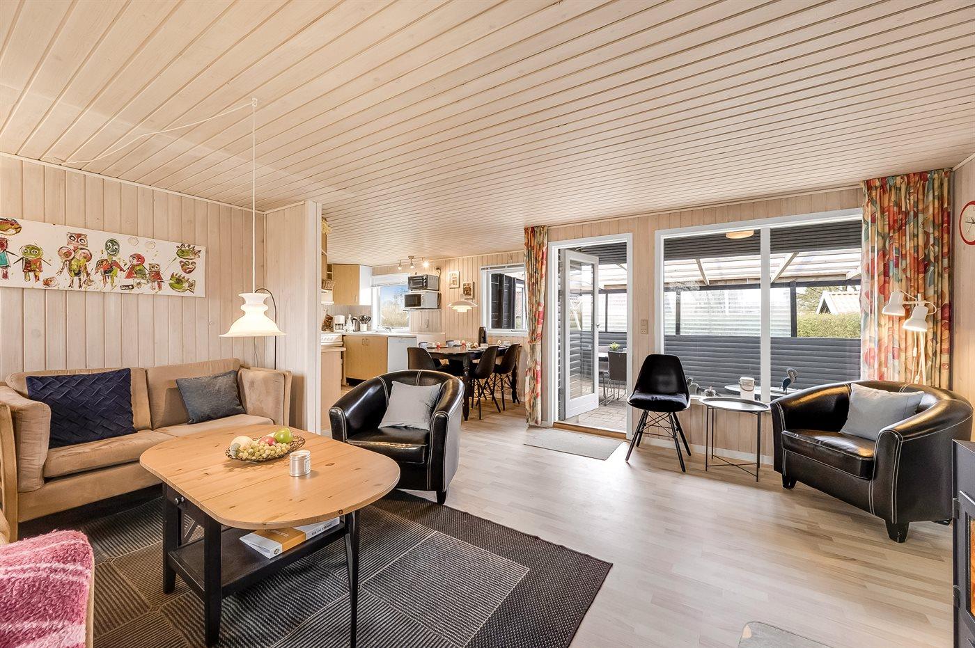 I gåafstand fra vandet ligger dette sommerhus på en dejlig grund, som delvist er omgivet af en tæt hæk samt et flytbart hegn. Til huset hører såvel åben som overdækket terrasse og på grunden er der god plads til boldspil og leg.