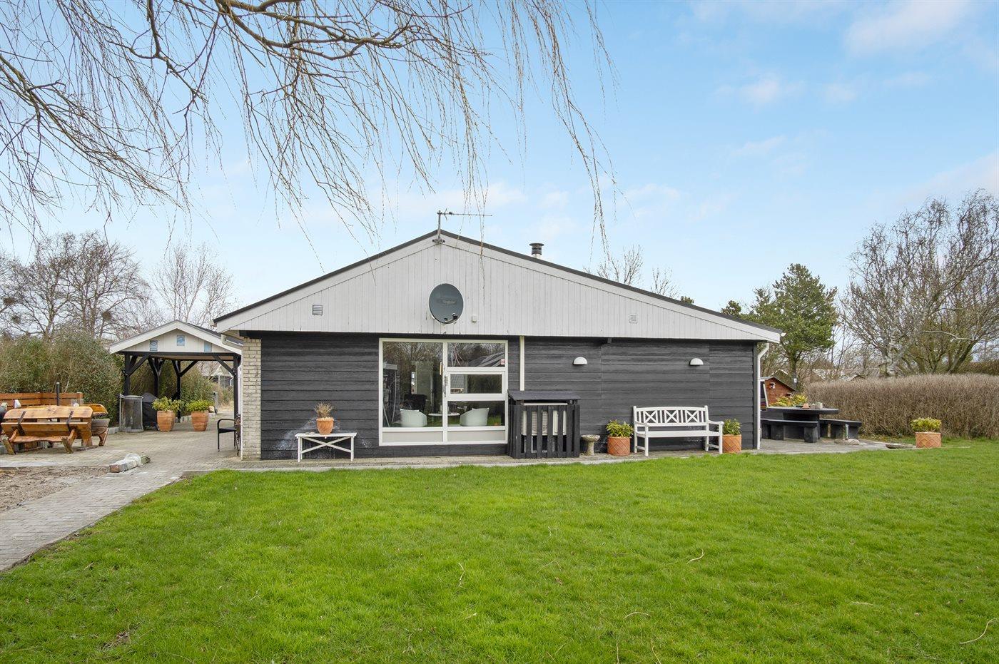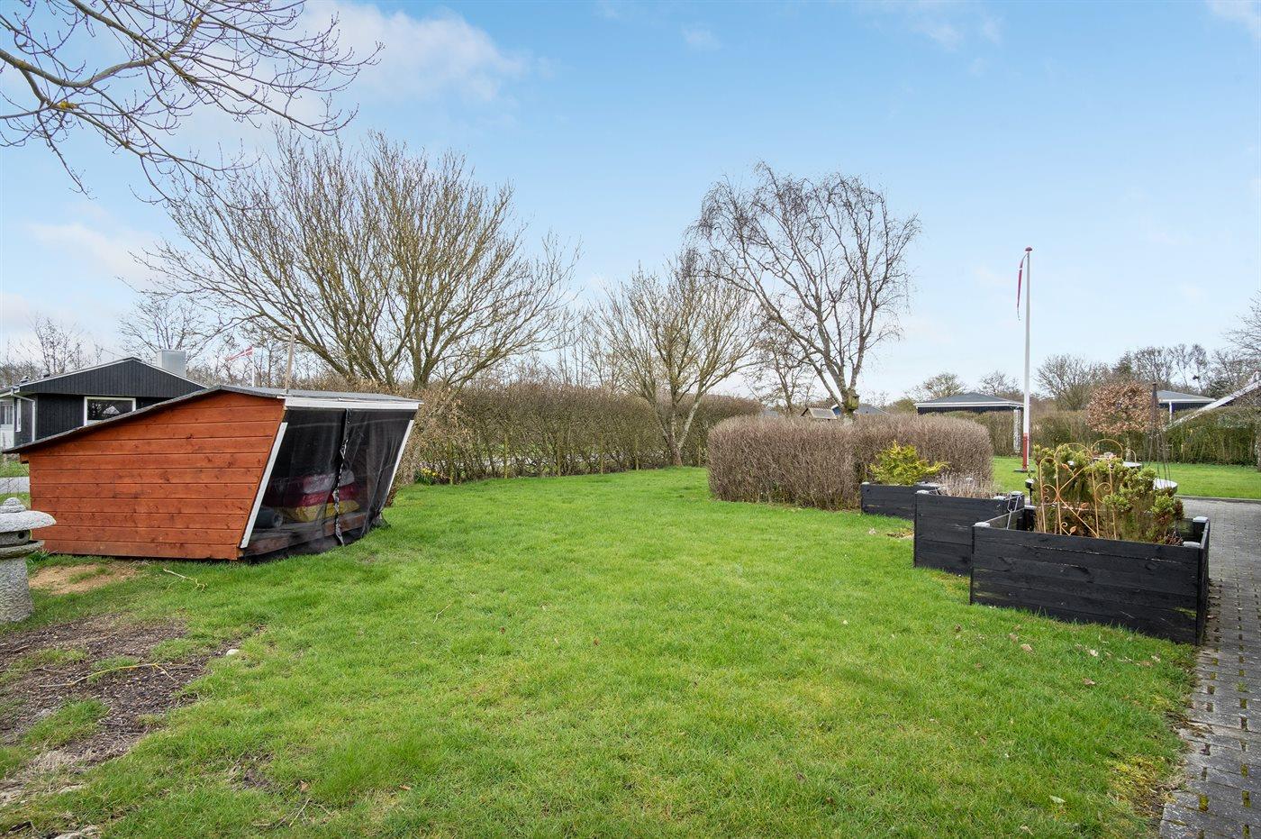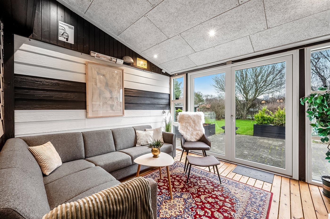 Sommerhuset har en skøn udestue, hvor I kan nyde de lidt køligere aftentimer, og da grunden er indhegnet, kan børn og hunde løbe frit omkring.