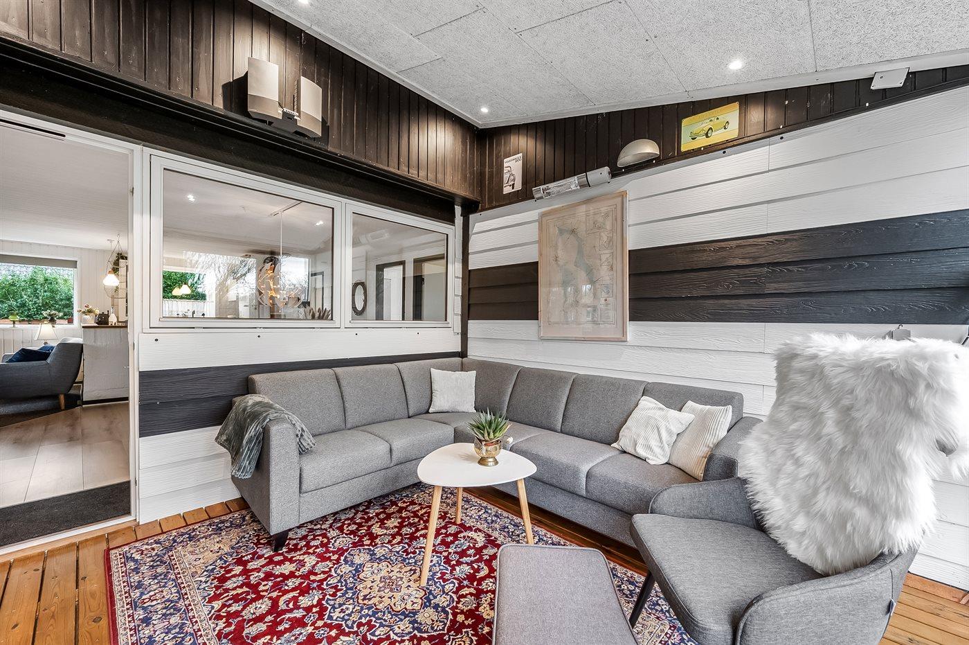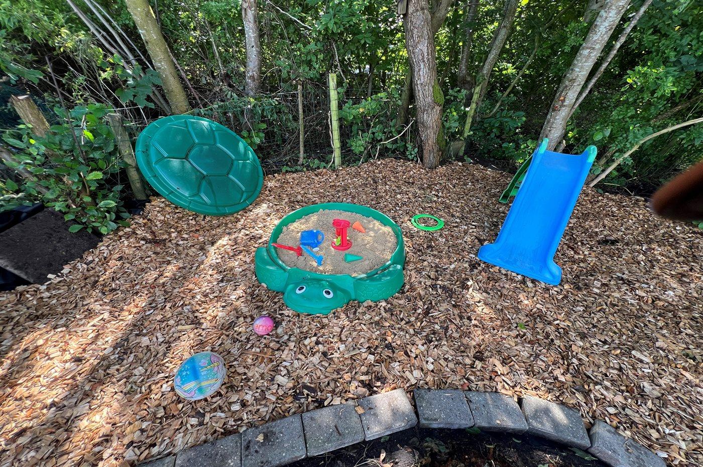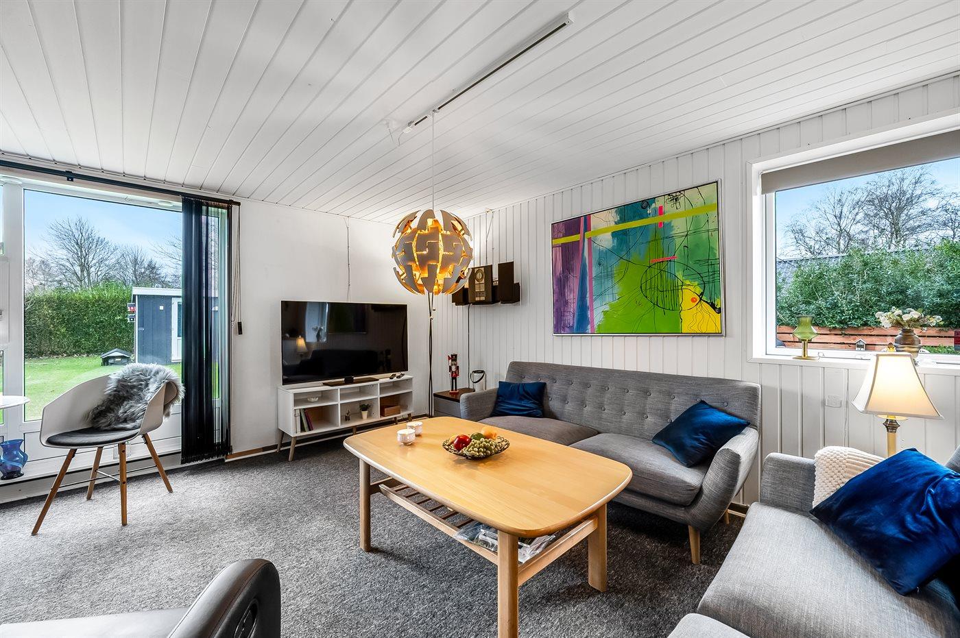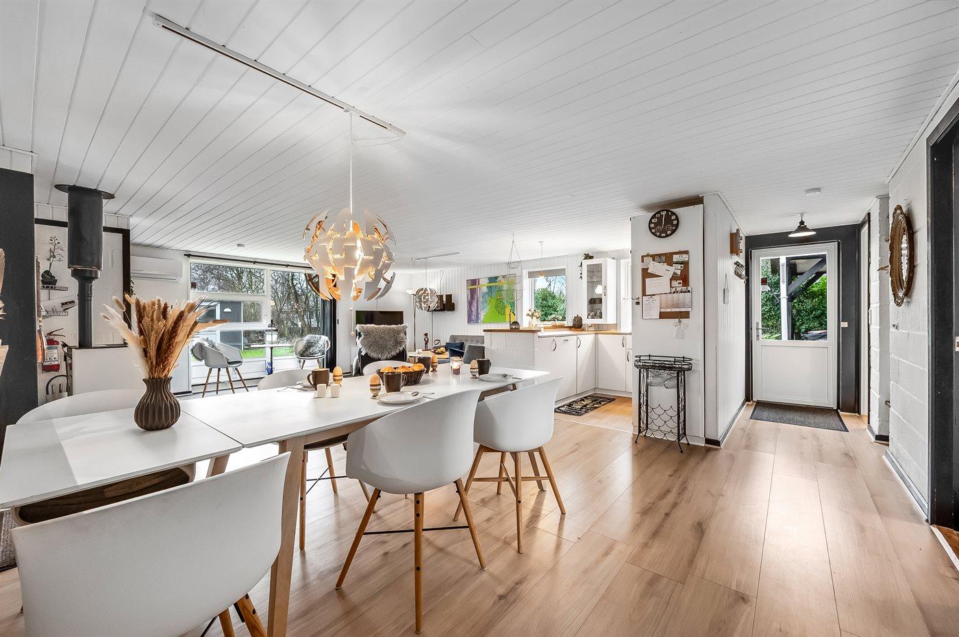 Sommerhuset har en skøn udestue, hvor I kan nyde de lidt køligere aftentimer, og da grunden er indhegnet, kan børn og hunde løbe frit omkring.