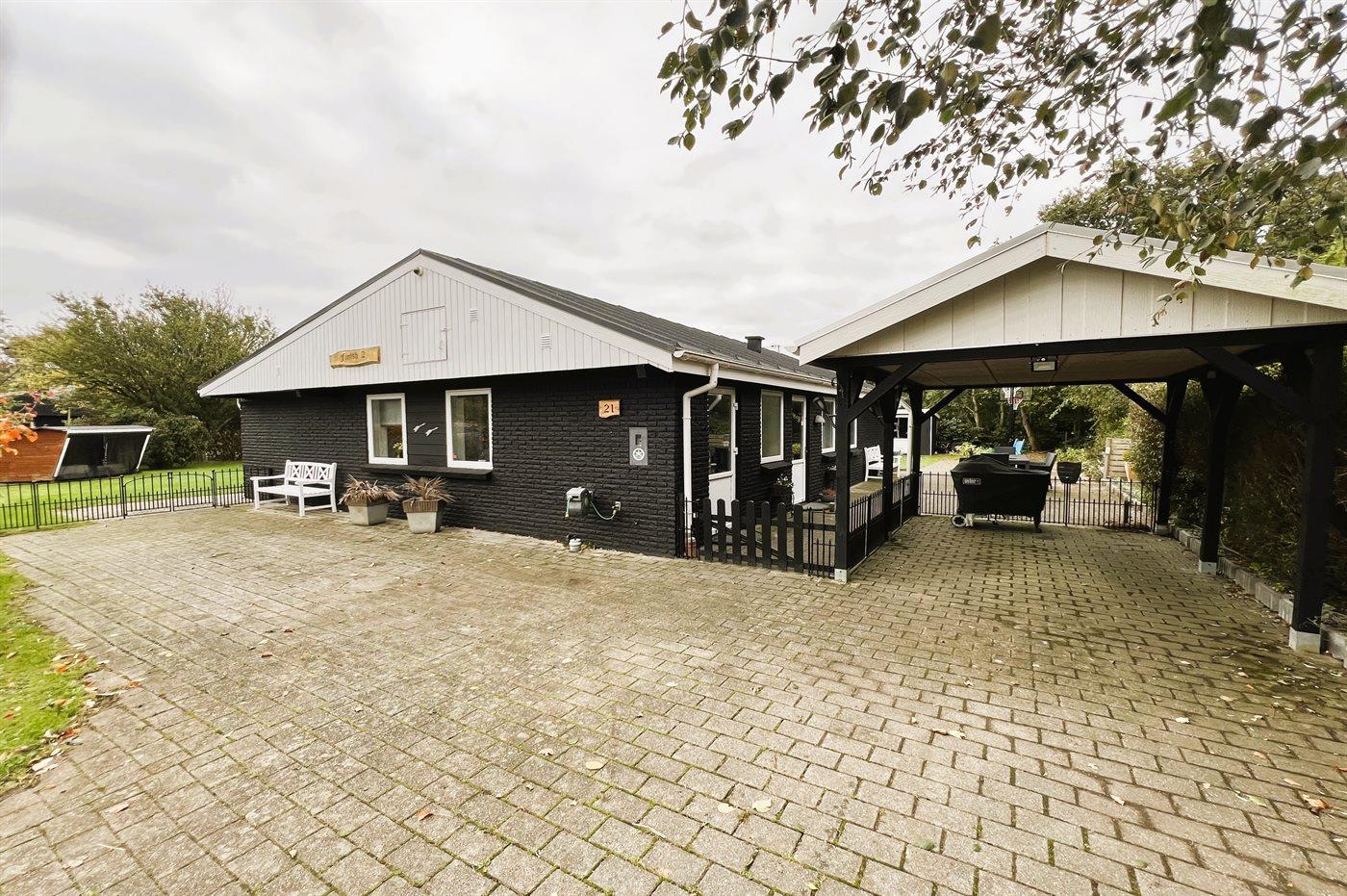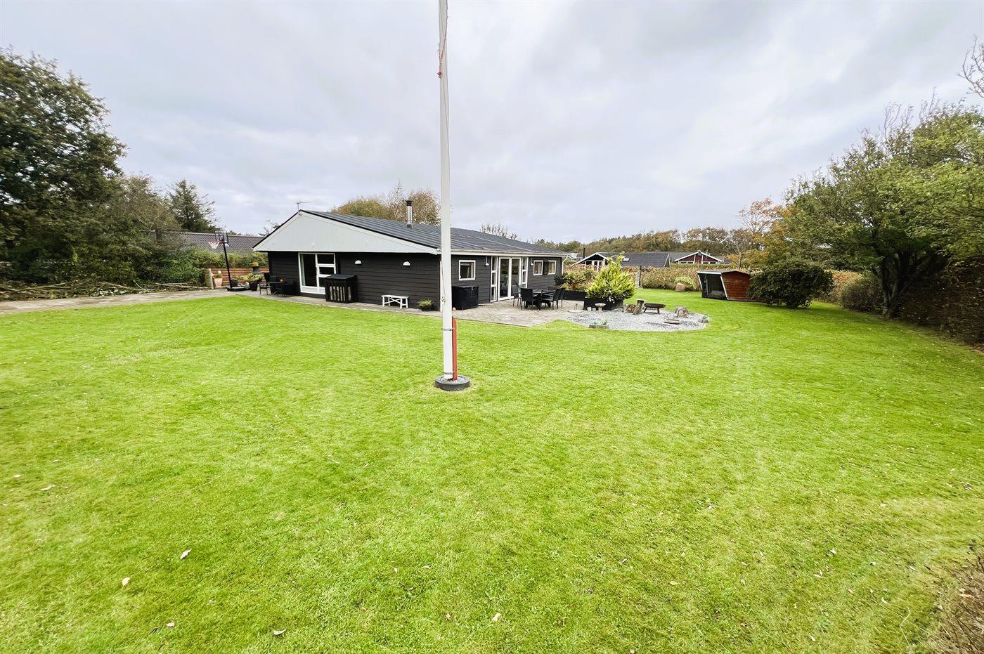 Hyggeligt sommerhus nær Ringkøbing Fjord med udestue, indhegnet have og gratis adgang til badelande og bowling.