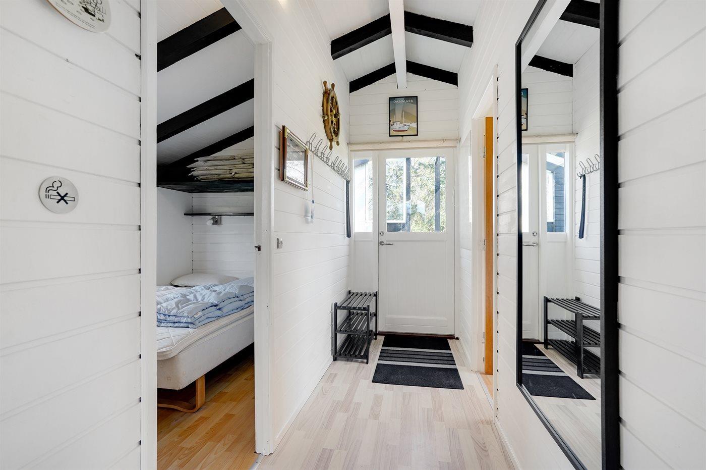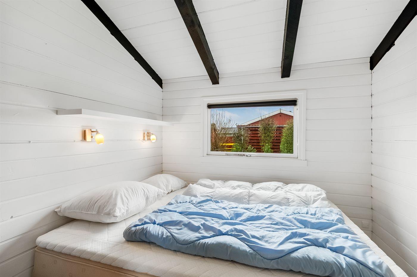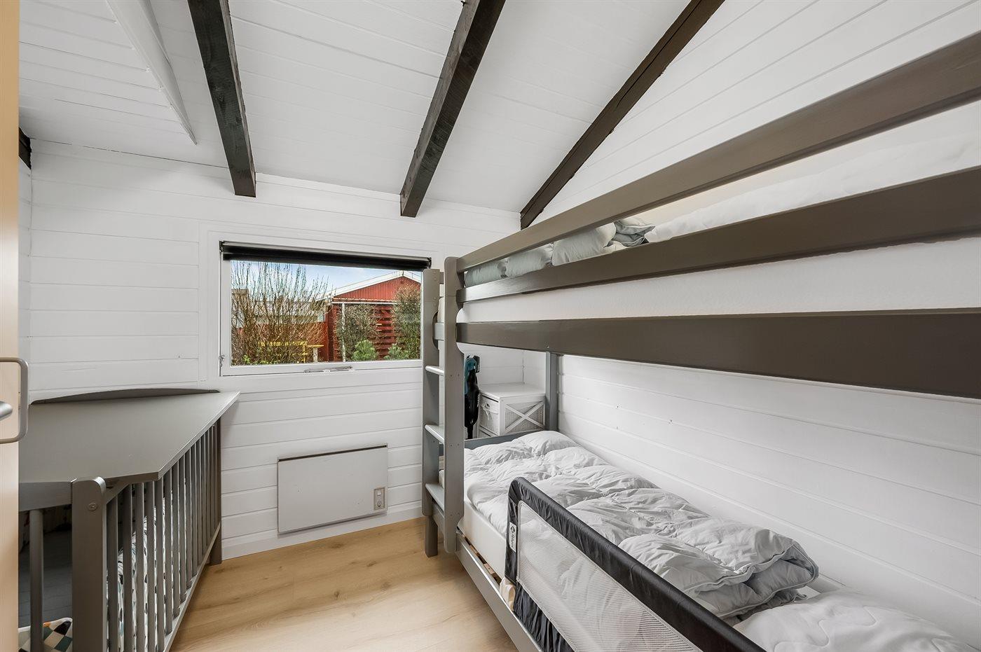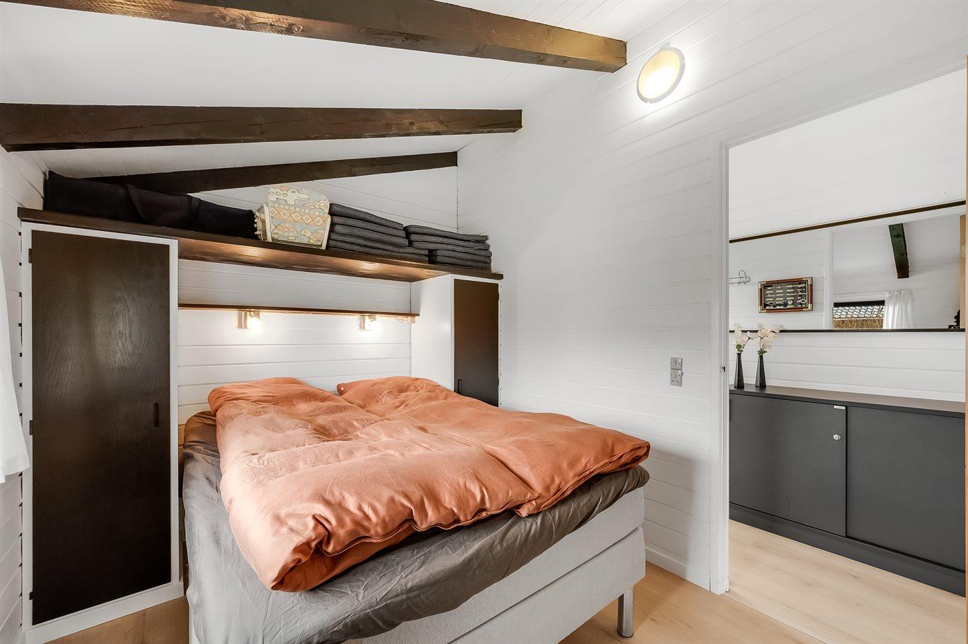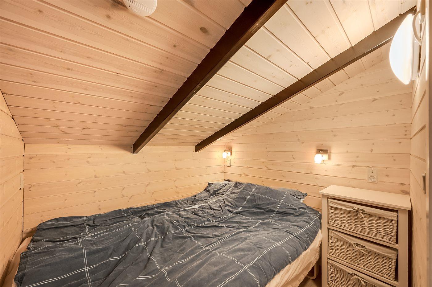 Der er i alt 3 soveværelser. Sovepladserne fordeler sig på: 4 sovepladser i dobbeltsenge. 2 sovepladser i køjeseng. 2 sovepladser i alkove. Derudover er der 1 stk. barneseng.