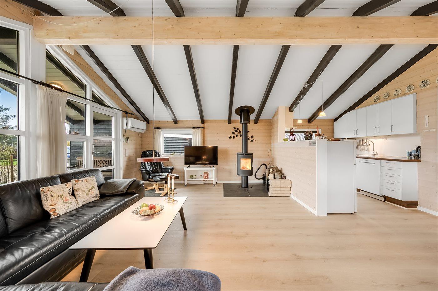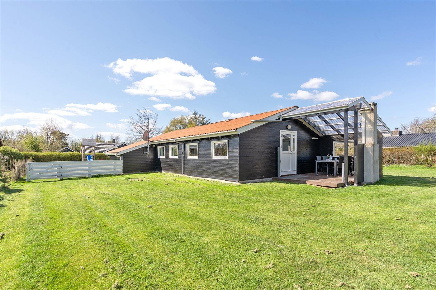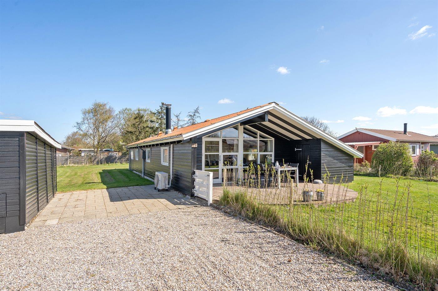 Hyggeligt sommerhus i Hemmet med indhegnet have og opladning til elbil, perfekt til familie og kæledyr.