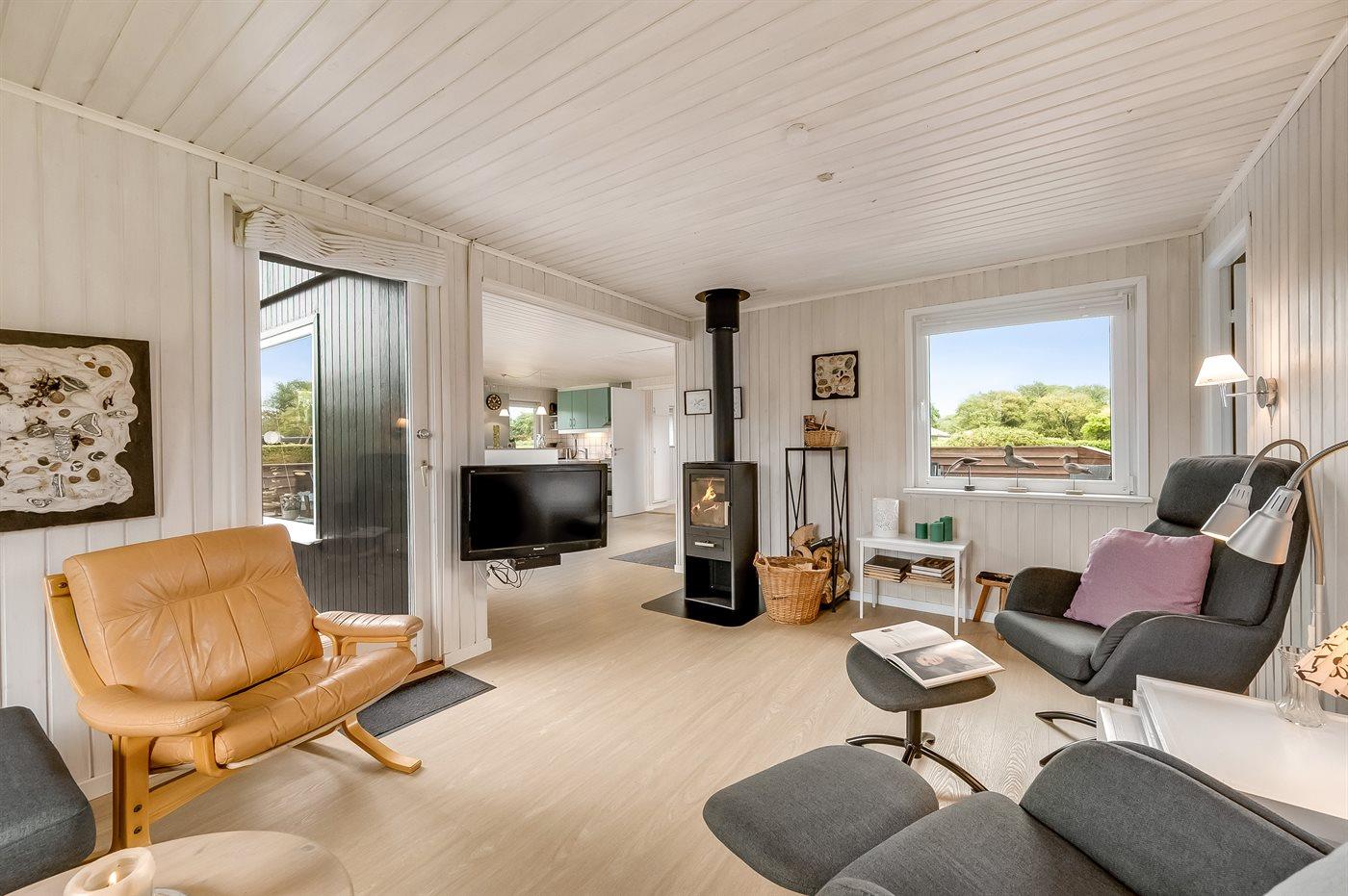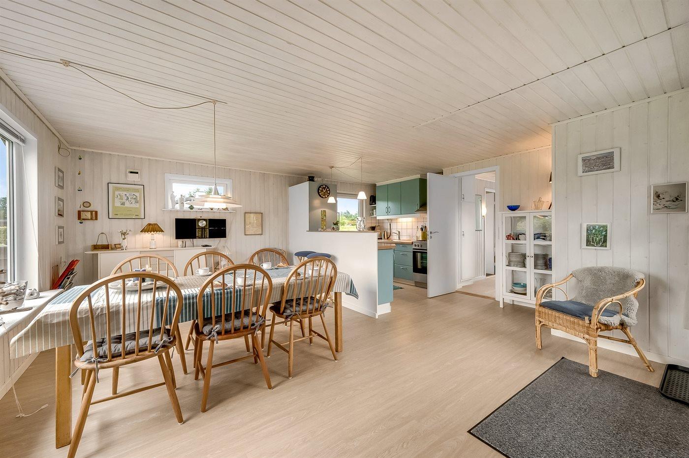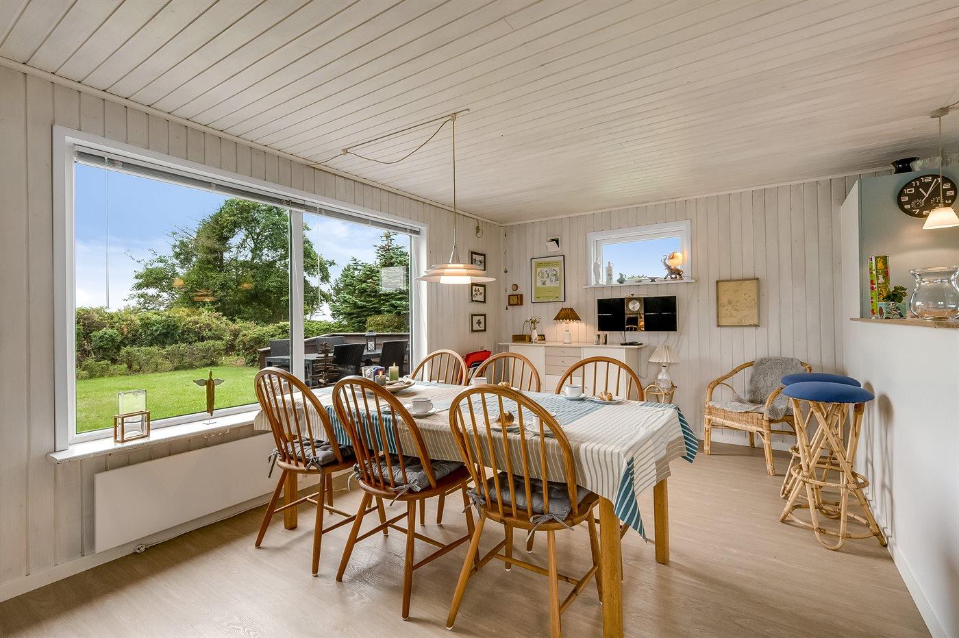 Et sommerhus i træ, bygget i 1980 og renoveret i 2008, beliggende på en natur-/havegrund. Der er fjordudsigt fra såvel hus som grund. Til huset hører åbne terrasser med havemøbler. Vægge og lofter er beklædt med træ.