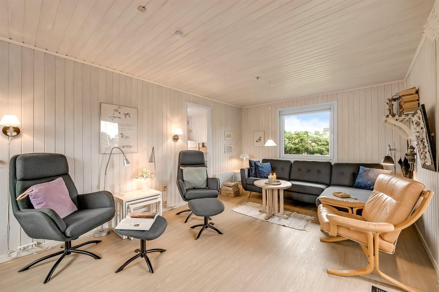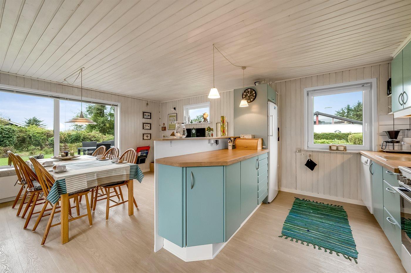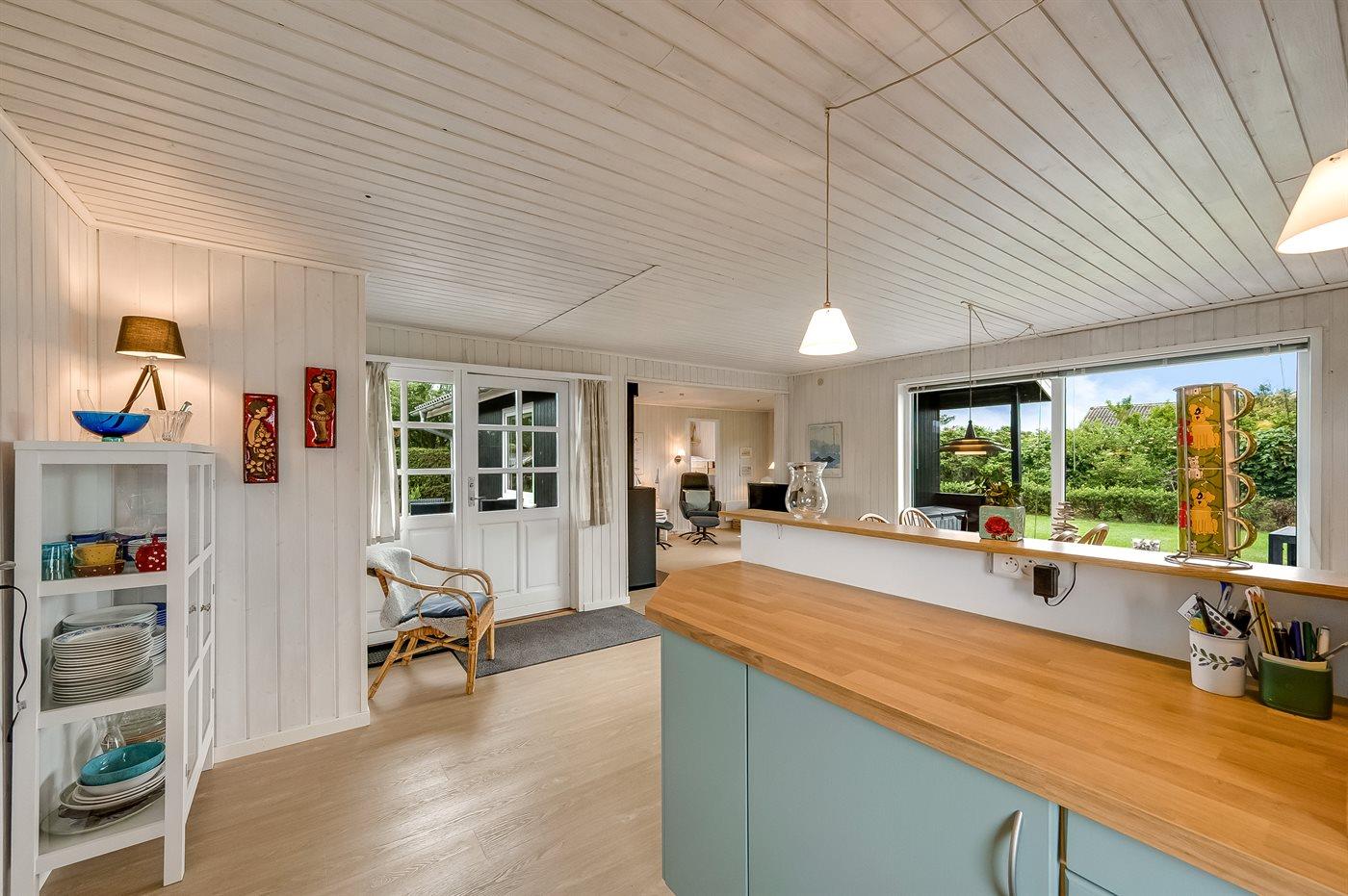 Et sommerhus i træ, bygget i 1980 og renoveret i 2008, beliggende på en natur-/havegrund. Der er fjordudsigt fra såvel hus som grund. Til huset hører åbne terrasser med havemøbler. Vægge og lofter er beklædt med træ.