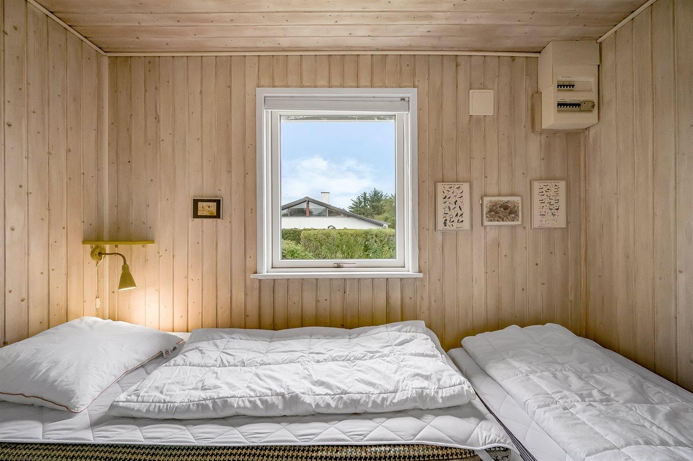 Husets sovepladser fordeler sig på 3 værelser; 1 med dobbeltseng,1 med 2 enkeltsenge og 1 med køjeseng. Til de mindste feriegæster er der barneseng til rådighed.