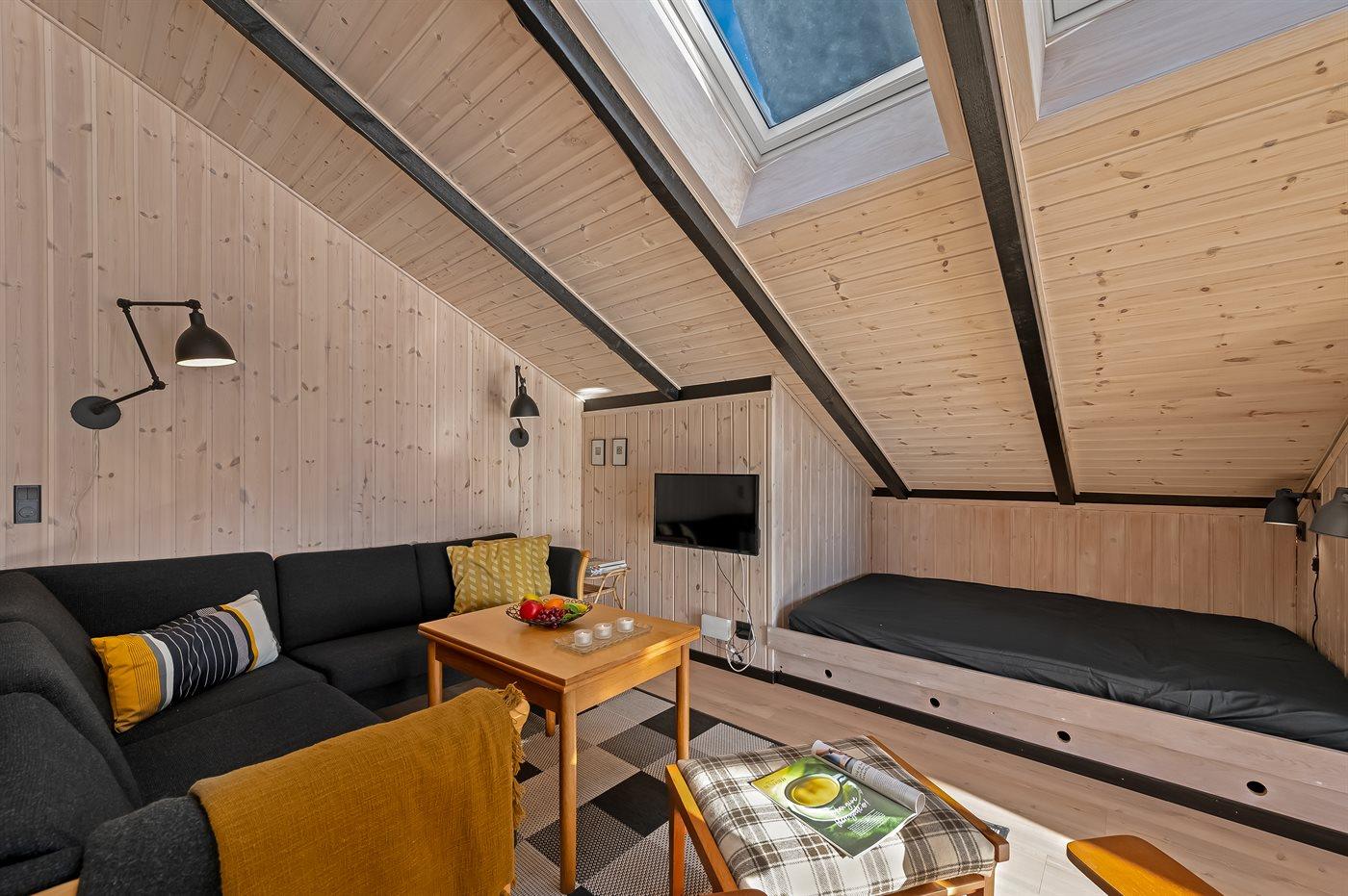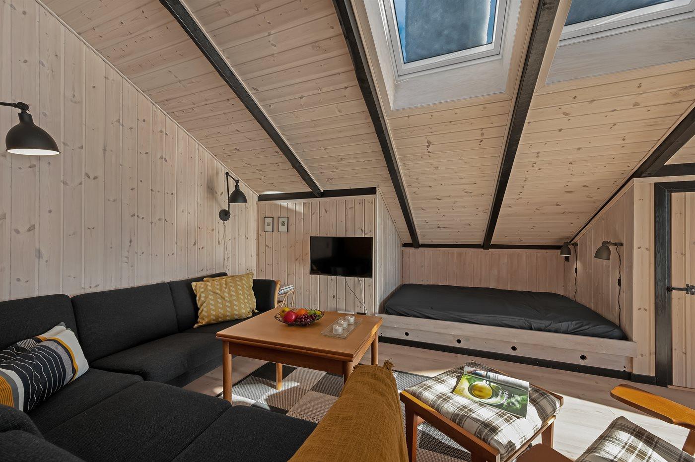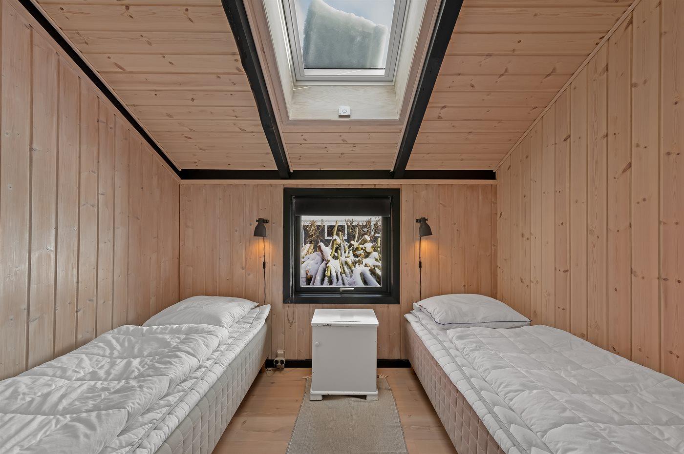 Der er i alt 3 soveværelser. Sovepladserne fordeler sig på: 4 sovepladser i dobbeltsenge. 2 sovepladser i enkeltsenge. 2 sovepladser i alkove. 2 af disse sovepladser befinder sig i køkken-alrum. Derudover er der 1 stk. barneseng.