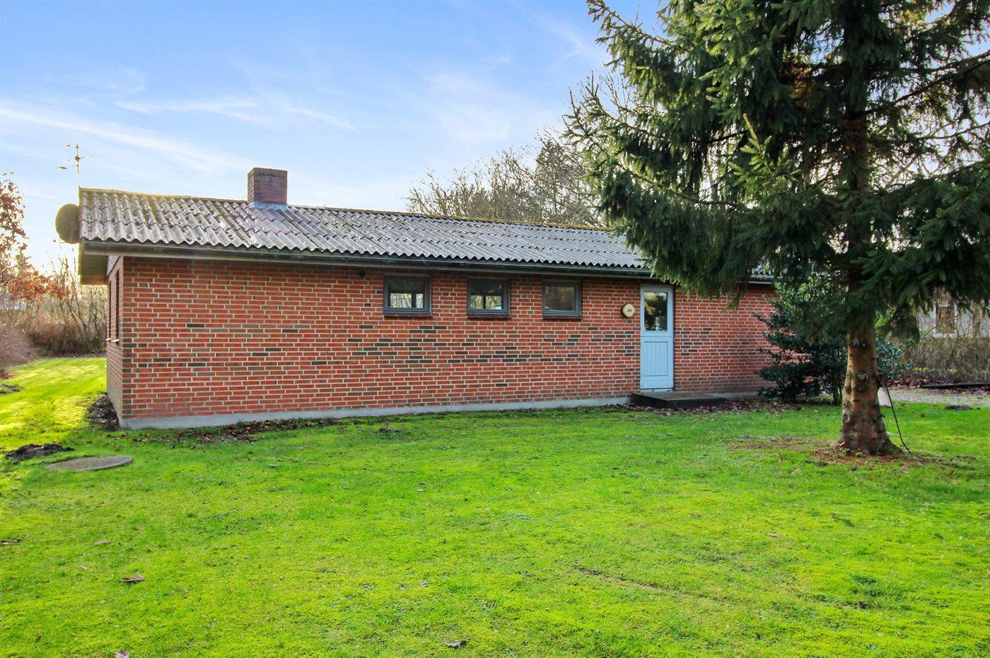Ferieboligen er beliggende på en 1000 m² stor naturgrund. Der er 7000 m til havet. Der er 700 m til fjorden. Nærmeste forretning er beliggende i en afstand af 1600 m. Til ferieboligen hører 7 m² terrasseareal. Desuden er der 10 m² overdækket terrasse. Gynge. Der er carport til rådighed. Parkering ved ferieboligen.