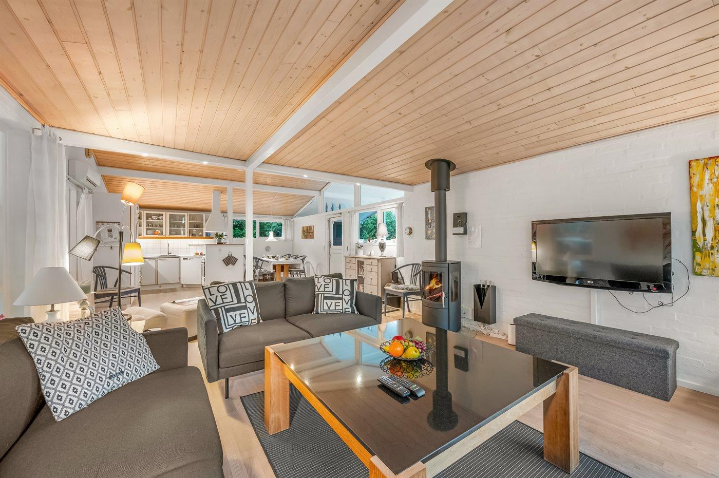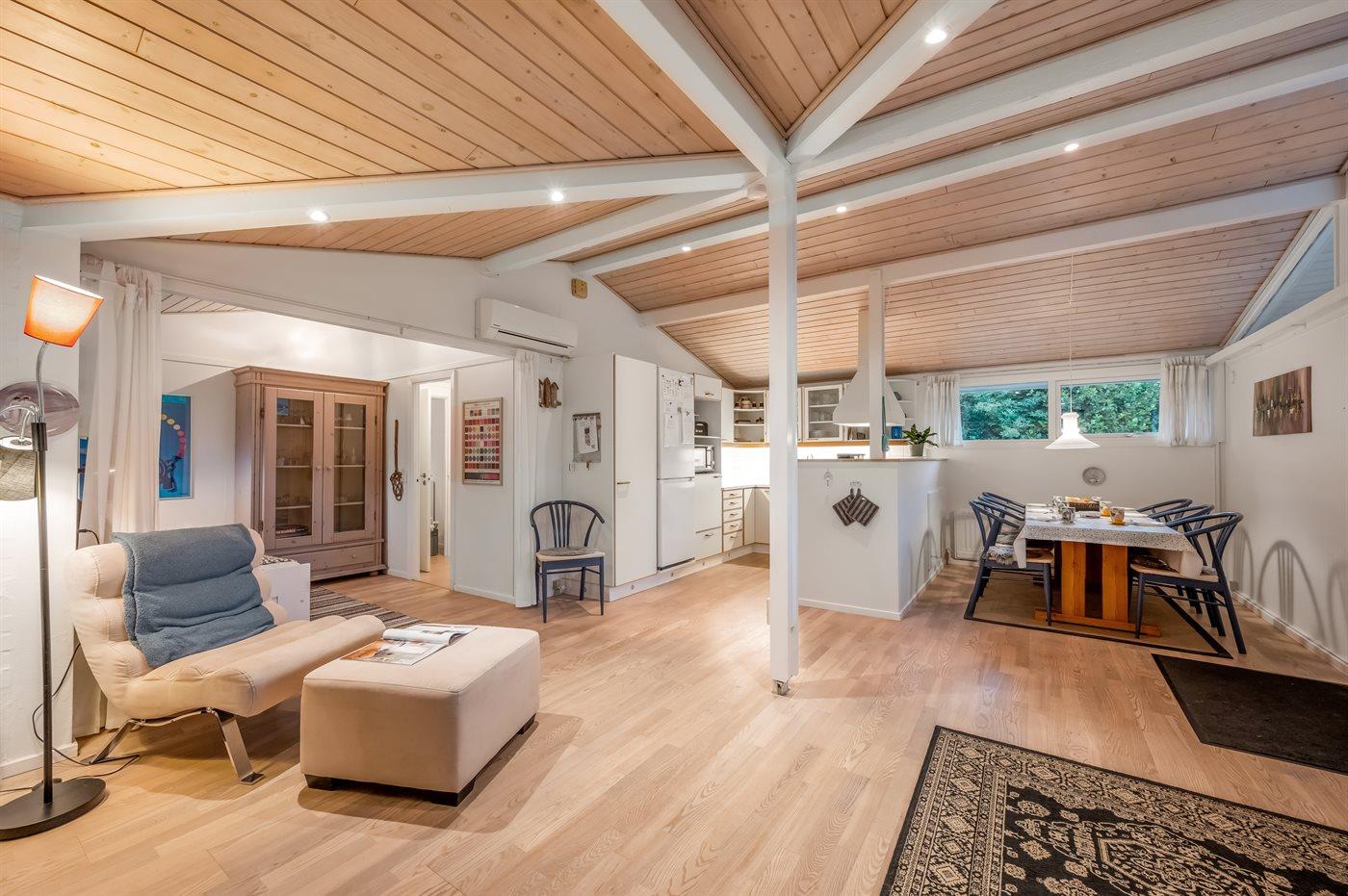 Sommerhuset egner sig til 6 personer. Ferieboligen er på 84 m² og er bygget i 1972. I 2012 gennemgik ferieboligen en delvis renovering. Det er tilladt at medbringe 2 husdyr. Ferieboligen er udstyret med 1 energibesparende luft til luft varmepumpe. Ferieboligen har vaskemaskine. Tørretumbler. Frysekapacitet på 120 liter. Der er desuden brændeovn. Til de små er der 2 stk. barnestole.