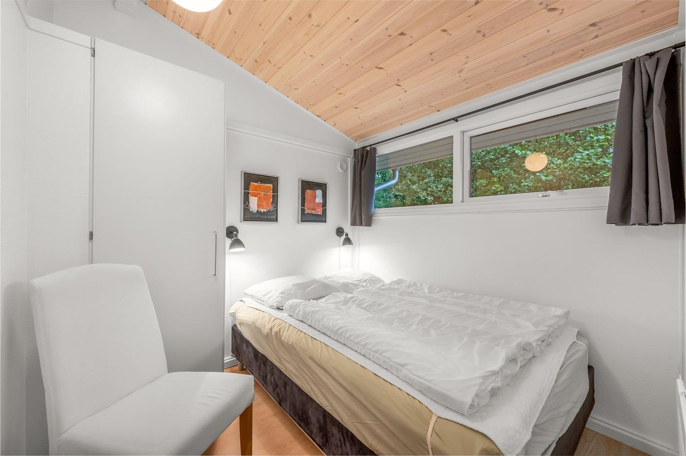 Der er i alt 3 soveværelser. Sovepladserne fordeler sig på: 2 sovepladser i dobbeltseng.2 sovepladser i elevationssenge. 2 sovepladser i alkove.- 2 af disse sovepladser befinder sig i en mellemgang på sovesofa.