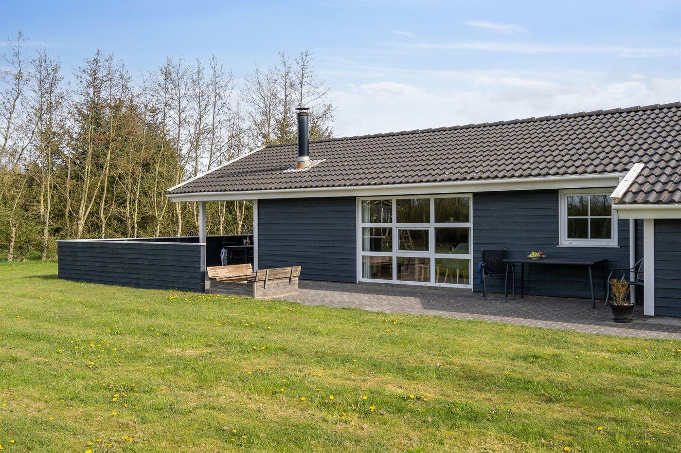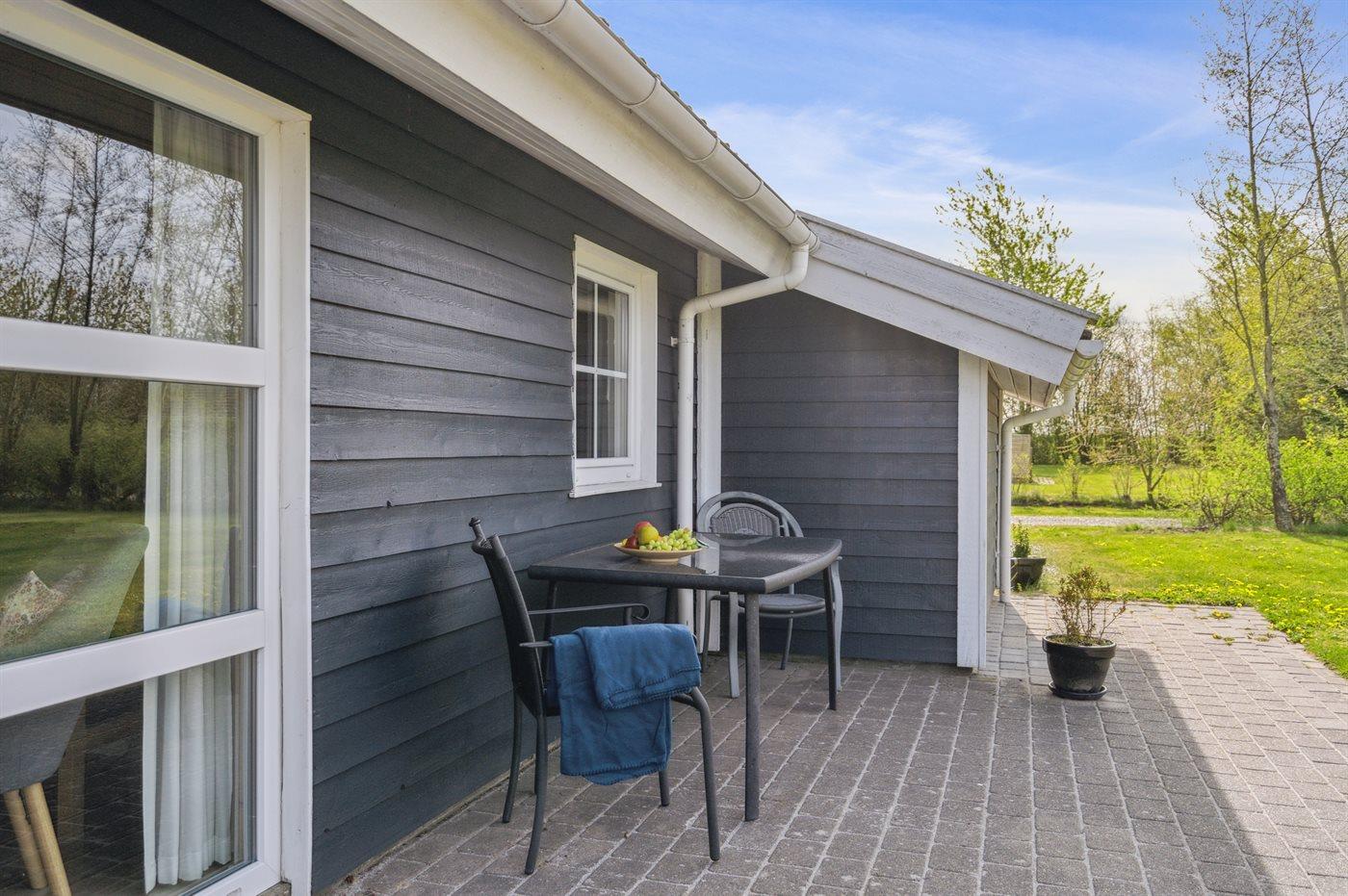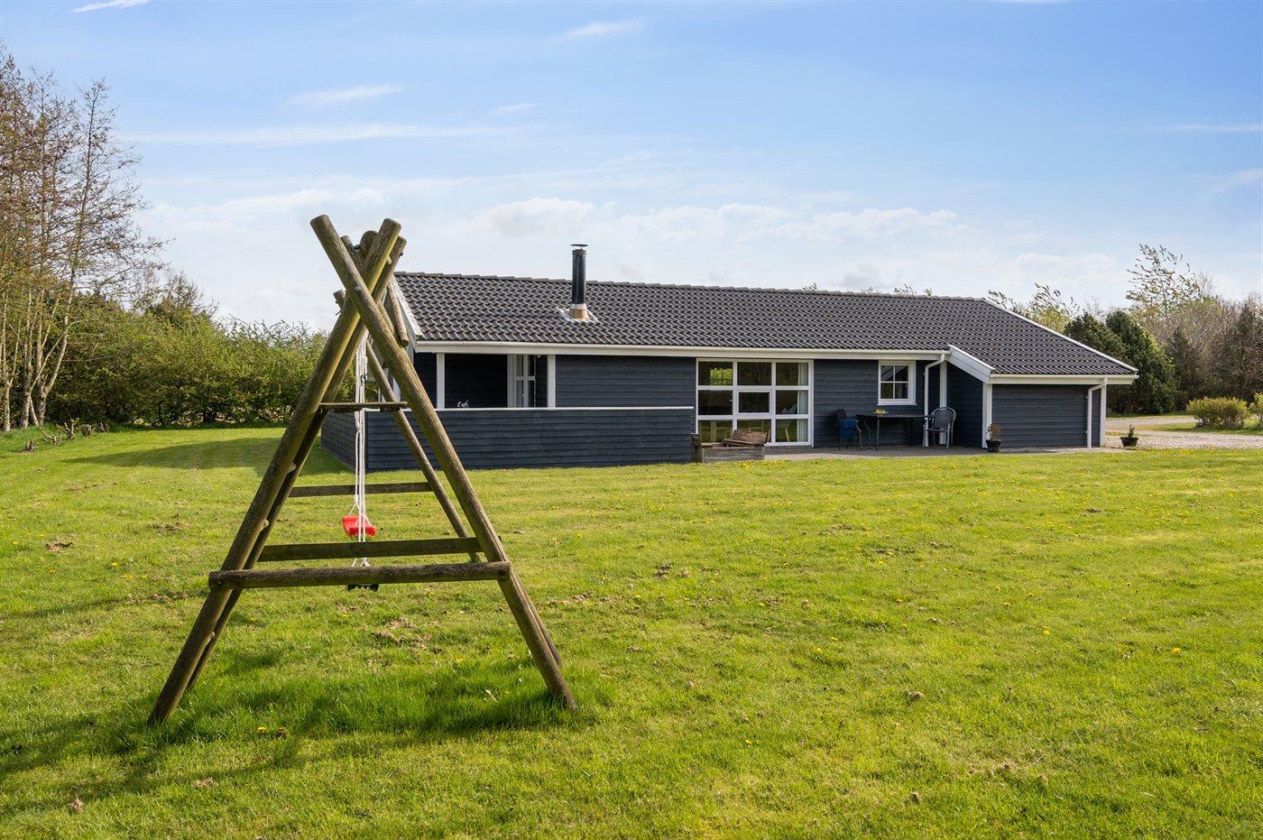 Ferieboligen er beliggende på en 1200 m² stor naturgrund. Der er 7700 m til havet. Der er 1170 m til fjorden. Nærmeste forretning er beliggende i en afstand af 1000 m. Til ferieboligen hører 50 m² terrasseareal. Desuden er der 6 m² overdækket terrasse. Gynge. Sandkasse. Parkering ved ferieboligen.