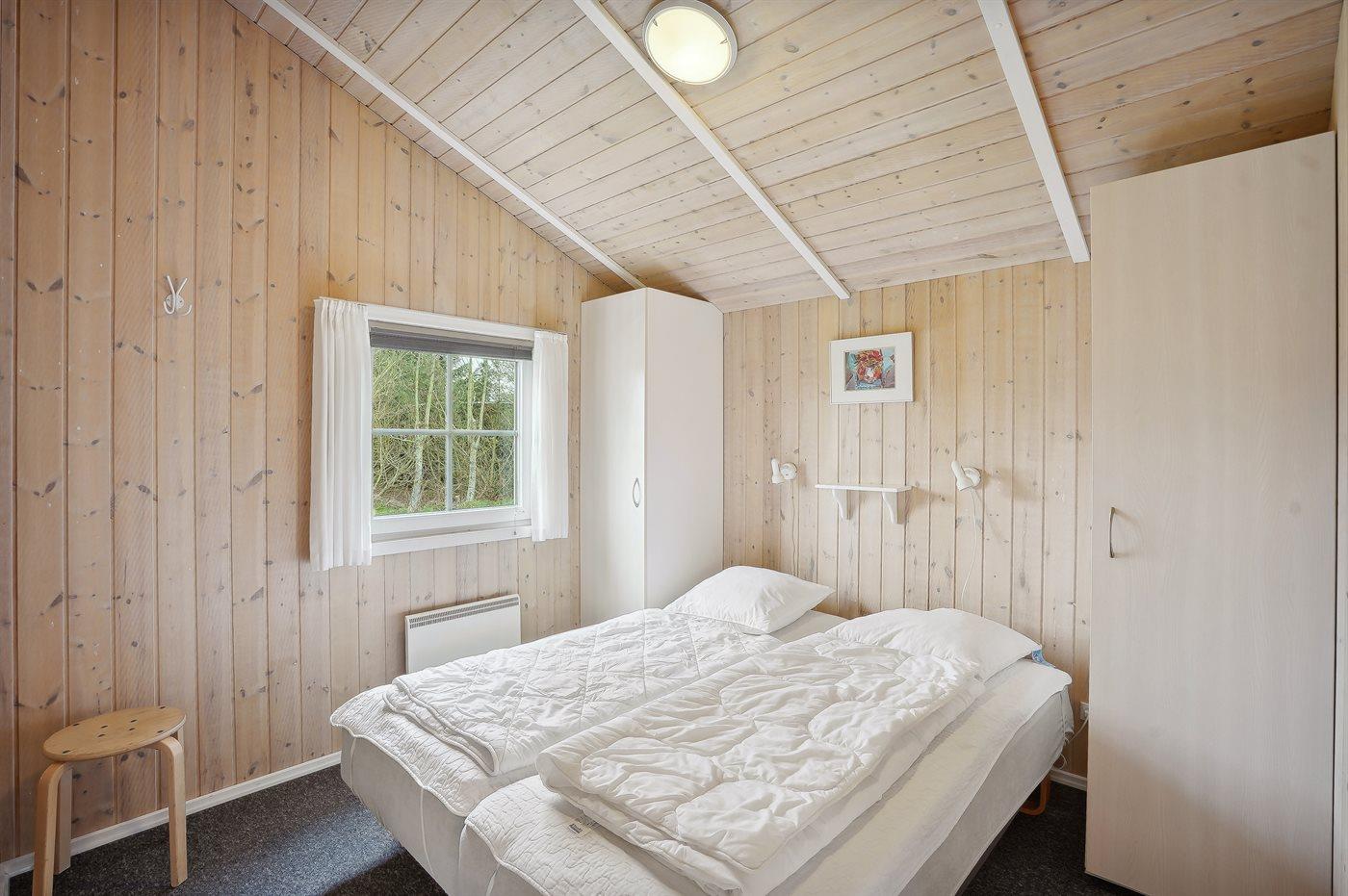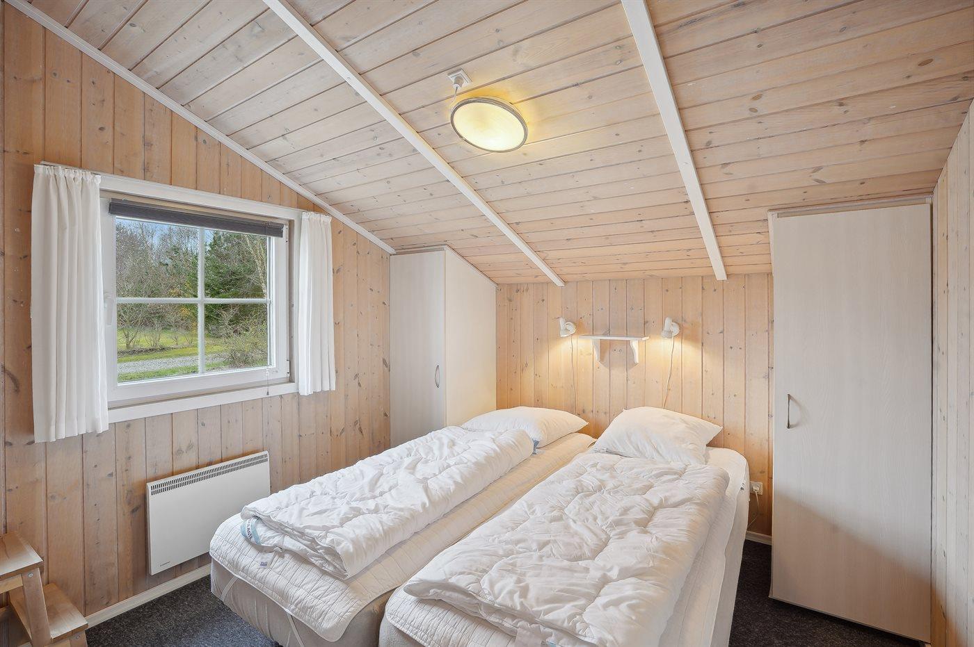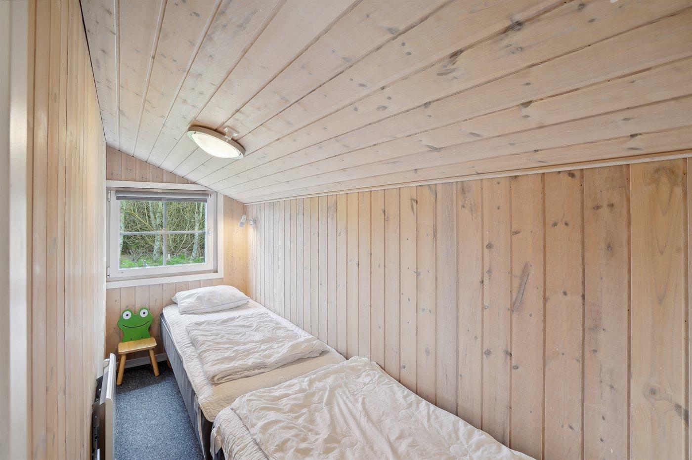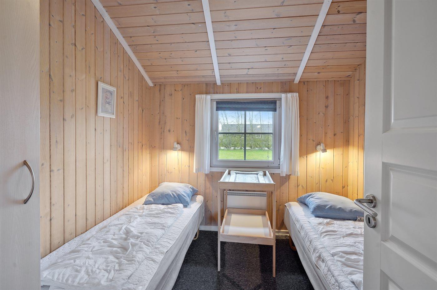 Der er i alt 3 soveværelser. Sovepladserne fordeler sig på: 4 sovepladser i dobbeltsenge. 2 sovepladser i enkeltsenge. Derudover er der 1 stk. barneseng.