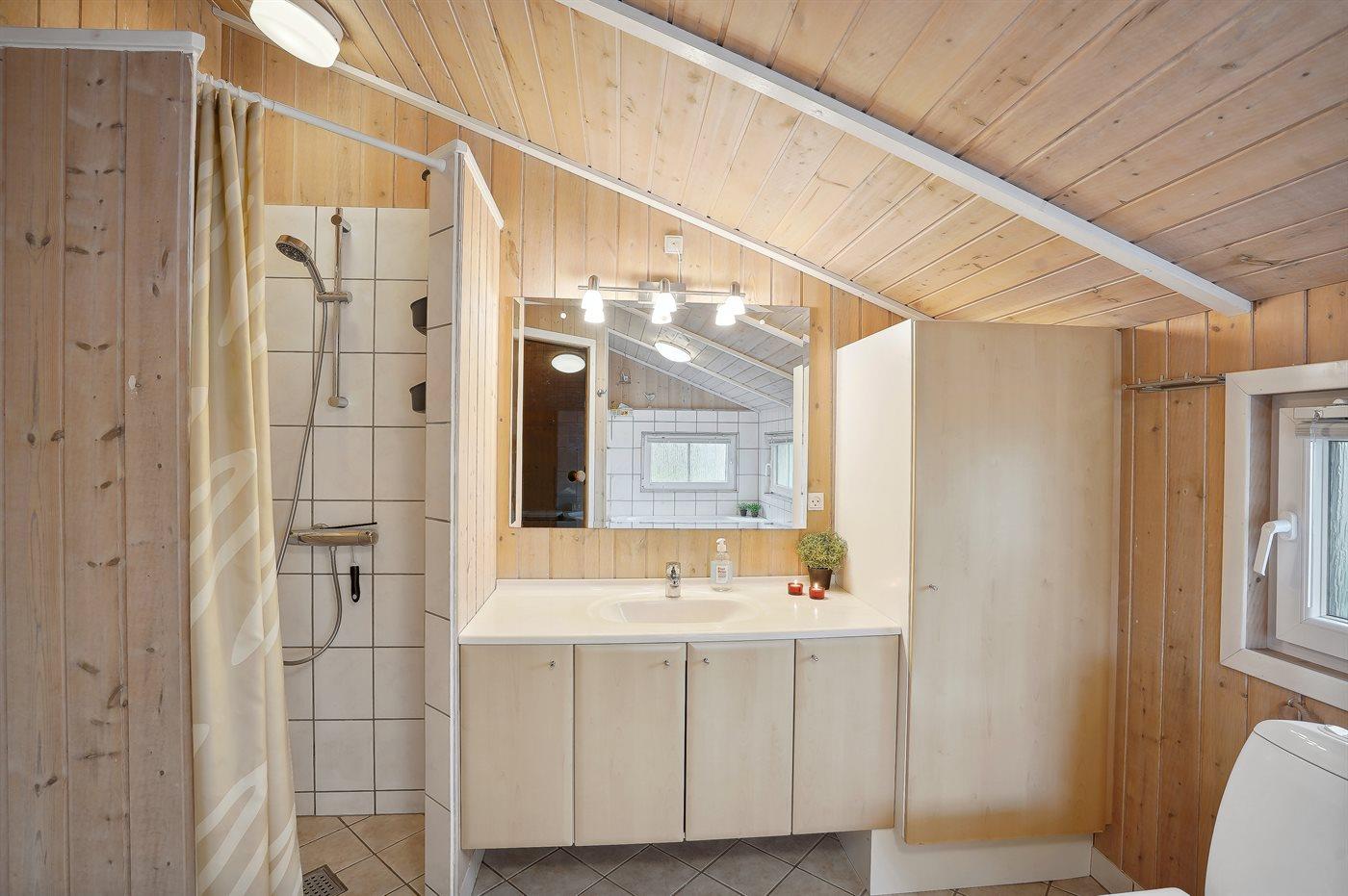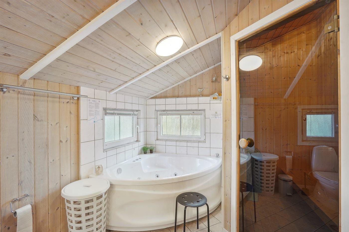 Der er 1 badeværelse med bruseniche og 1 toilet.. Der er gulvvarme på 1 badeværelse. I saunaen er der mulighed for afslapning.