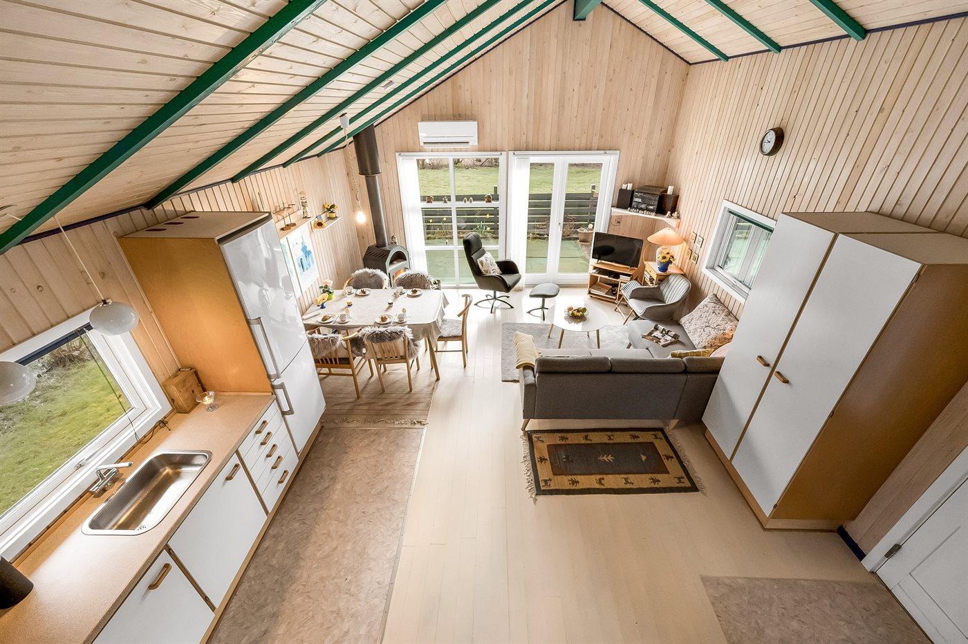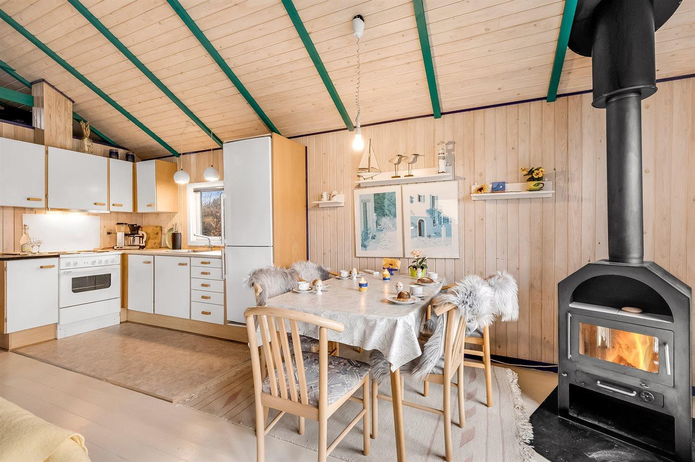 Hyggelig sommerhus i træ, beliggende på naturgrund ikke langt fra Ringkøbing Fjord, hvor der er mulighed for at fiske og windsurfe. Huset er bygget i 1997, og det ligger på en lille naturgrund. Til huset hører en skøn, afskærmet terrasse med havemøbler. Indvendigt er der trægulve. Godt badeværelse med gulvvarme og bruseniche. Det velindrettede køkken er bl. a. udstyret med mikrobølgeovn og fryser. Køkkenet er kombineret med den hyggelige opholdsstue, der er indrettet med brændeovn, TV med parabol (digital), stereoanlæg og DVD-afspiller. Husets sovepladser fordeler sig på 2 værelser med hver 1 dobbeltseng. Desuden hems med 1 soveplads. Desuden barneseng til rådighed. Et hyggeligt sommerhus, som ligger i et naturskønt område, hvor der er gode muligheder for at windsurfe på Ringkøbing Fjord. Besøg den lille lystbådehavn i Bork, kun få km kørsel fra Bork Hytteby.