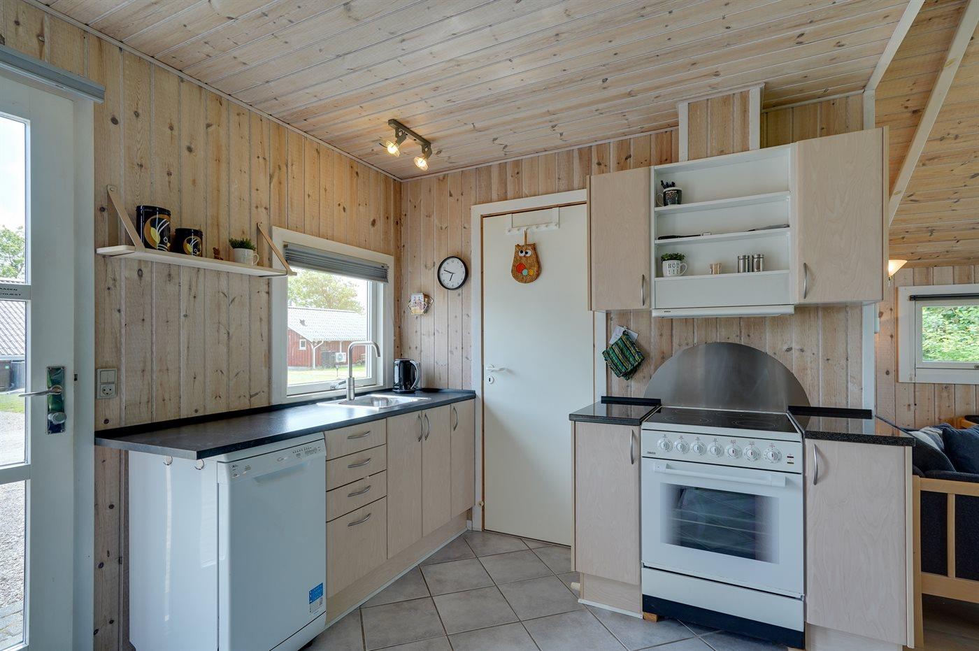 Køkkenet er udstyret med 1 køleskab. Der er 4 keramiske kogeplader, varmluftovn, mikrobølgeovn samt opvaskemaskine.