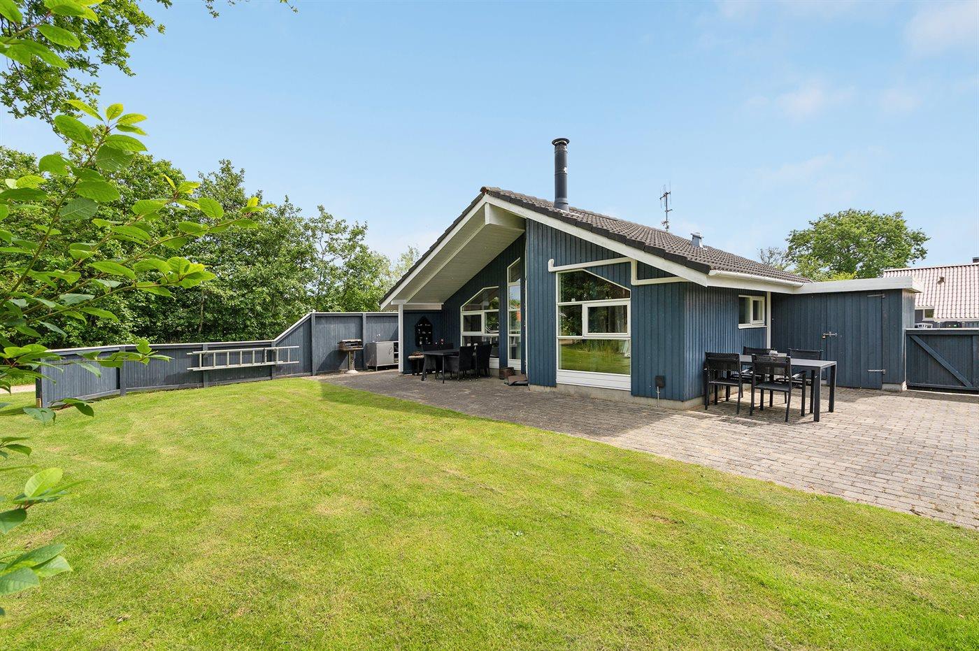 Ferieboligen er beliggende på en 500 m² stor naturgrund. Der er 6400 m til havet. Der er 1200 m til fjorden. Nærmeste forretning er beliggende i en afstand af 2000 m. Til ferieboligen hører 30 m² terrasseareal. Desuden er der 6 m² overdækket terrasse. Der er redskabsrum. Parkering ved ferieboligen.