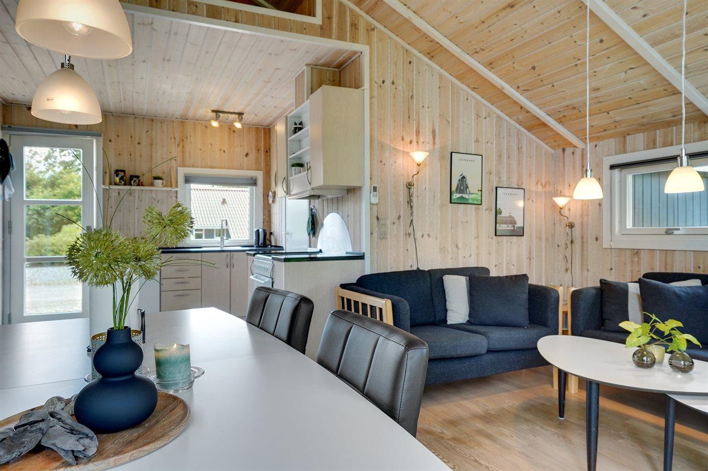 Lyst indrettet sommerhus beliggende på en lille naturgrund på en lukket vej. Huset ligger i et område, hvor der er gode muligheder for at nyde naturen til fods eller på cykel. Gode fiske- og surfmuligheder på Ringkøbing Fjord. Besøg også den lille lystbådehavn i Bork, hvor der hygge og atmosfære. Fra huset er der kun få min. gang til fælles legeplads med diverse legeredskaber.
