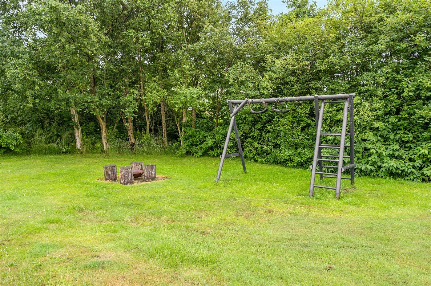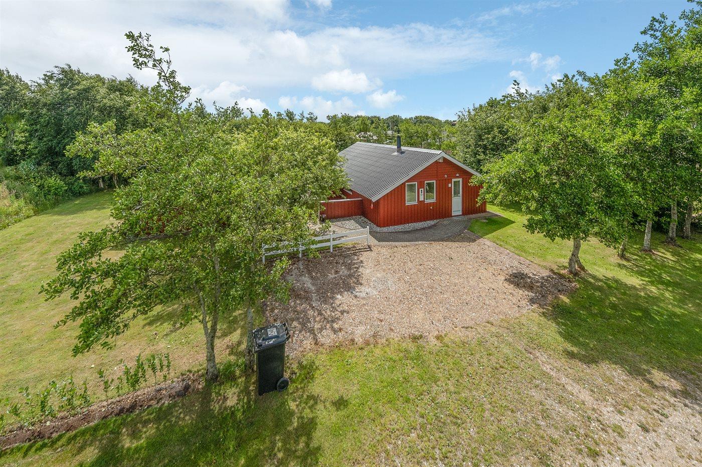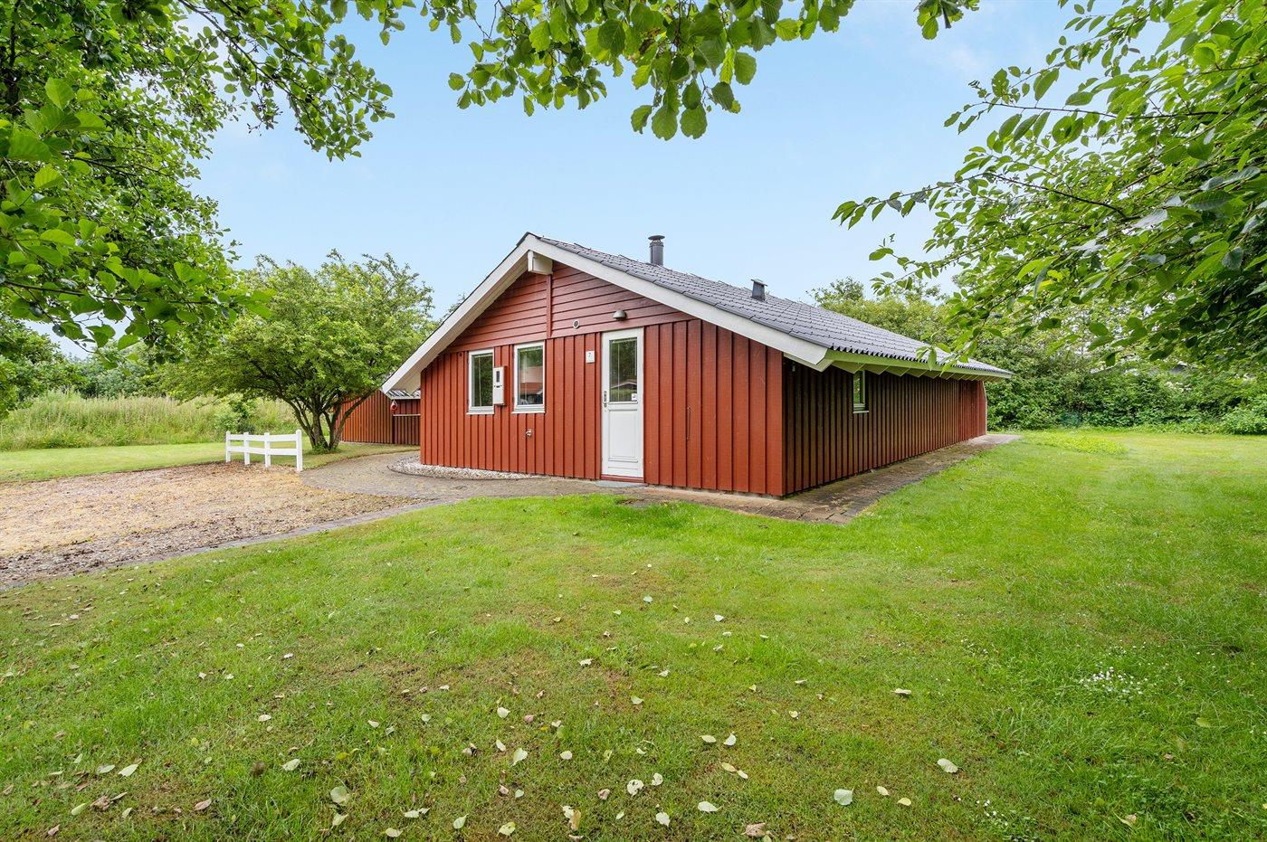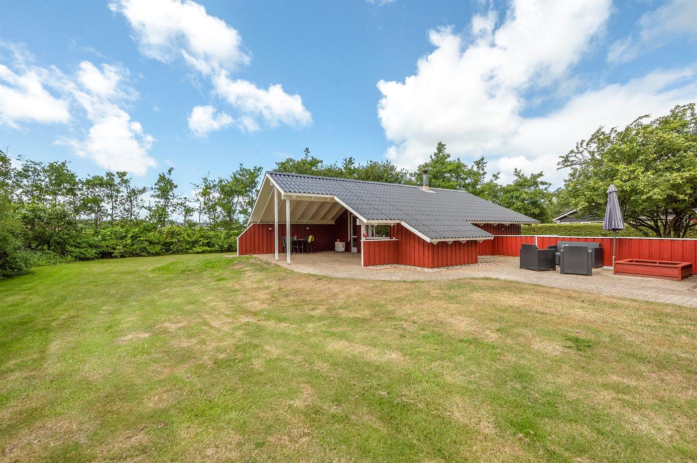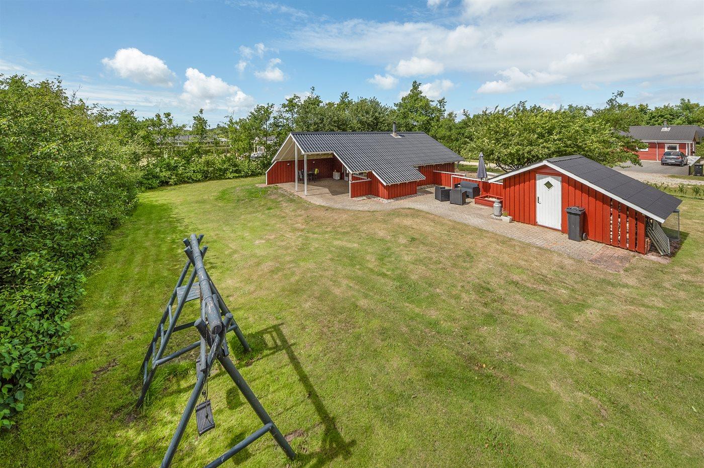 Ferieboligen er beliggende på en 1250 m² stor naturgrund. Der er 7350 m til havet. Der er 850 m til fjorden. Nærmeste forretning er beliggende i en afstand af 1200 m. Til ferieboligen hører 45 m² terrasseareal. Desuden er der 8 m² overdækket terrasse. Der er redskabsrum. Gynge. Sandkasse. Bålsted. Grill til rådighed. Parkering ved ferieboligen.
