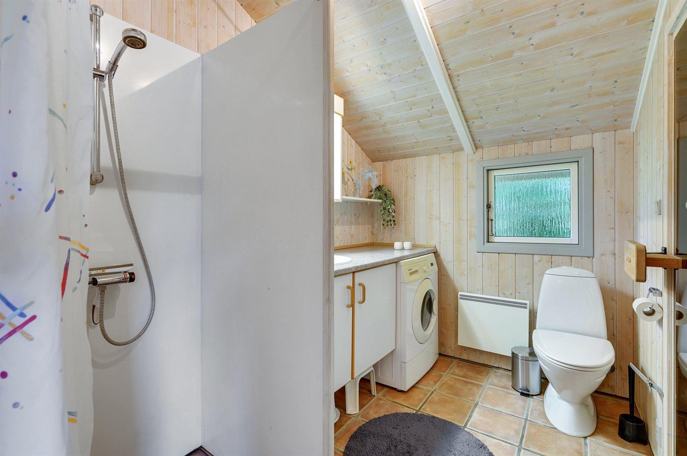 Der er 1 badeværelse med bruseniche og 1 toilet.. Der er gulvvarme på 1 badeværelse. I saunaen er der mulighed for afslapning.