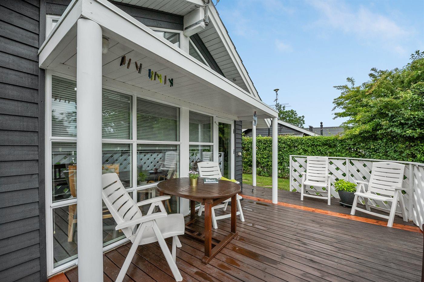 Hyggeligt sommerhus med brændeovn og terrasse tæt på Bork Havn og Ringkøbing Fjord.
