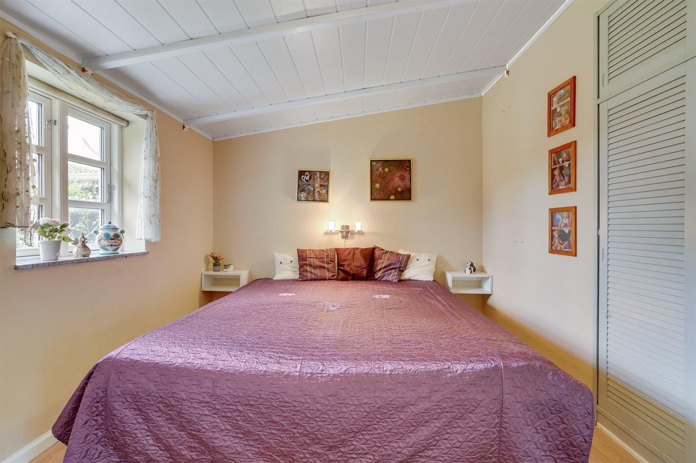 Der er i alt 2 soveværelser. Sovepladserne fordeler sig på: 2 sovepladser i dobbeltseng.2 sovepladser i elevationssenge. Derudover er der 1 stk. barneseng.