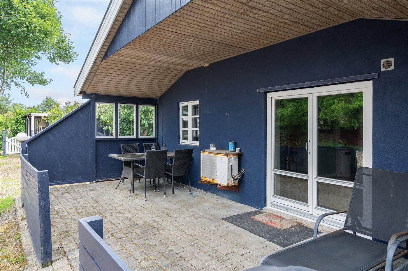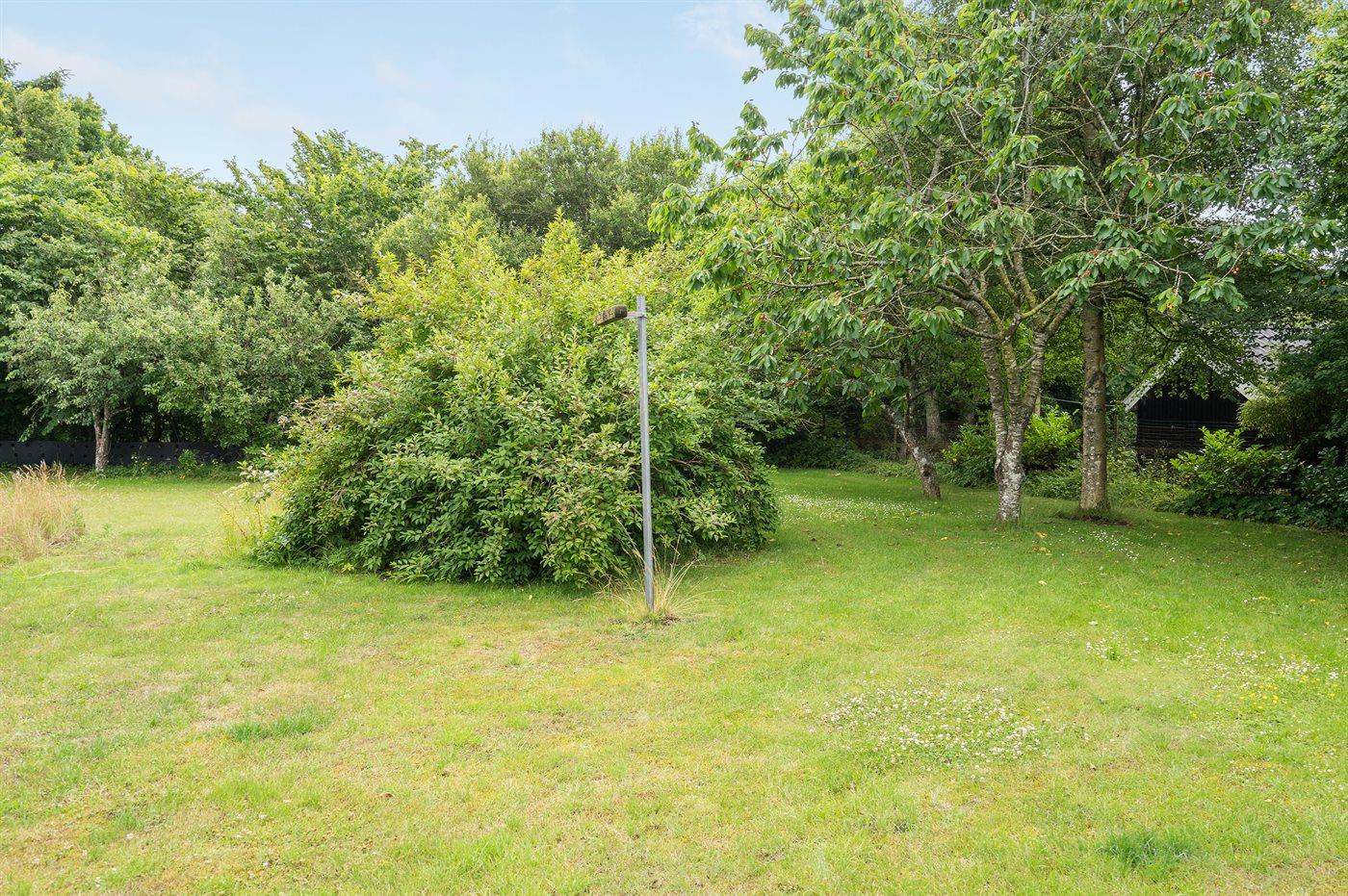 Ferieboligen er beliggende på en 600 m² stor naturgrund. Grunden er indhegnet. Der er 7500 m til havet. Der er 200 m til fjorden. Nærmeste forretning er beliggende i en afstand af 100 m. Til ferieboligen hører åbent terrasseareal. Desuden er der overdækket terrasse. Gynge. Sandkasse. Parkering ved ferieboligen.