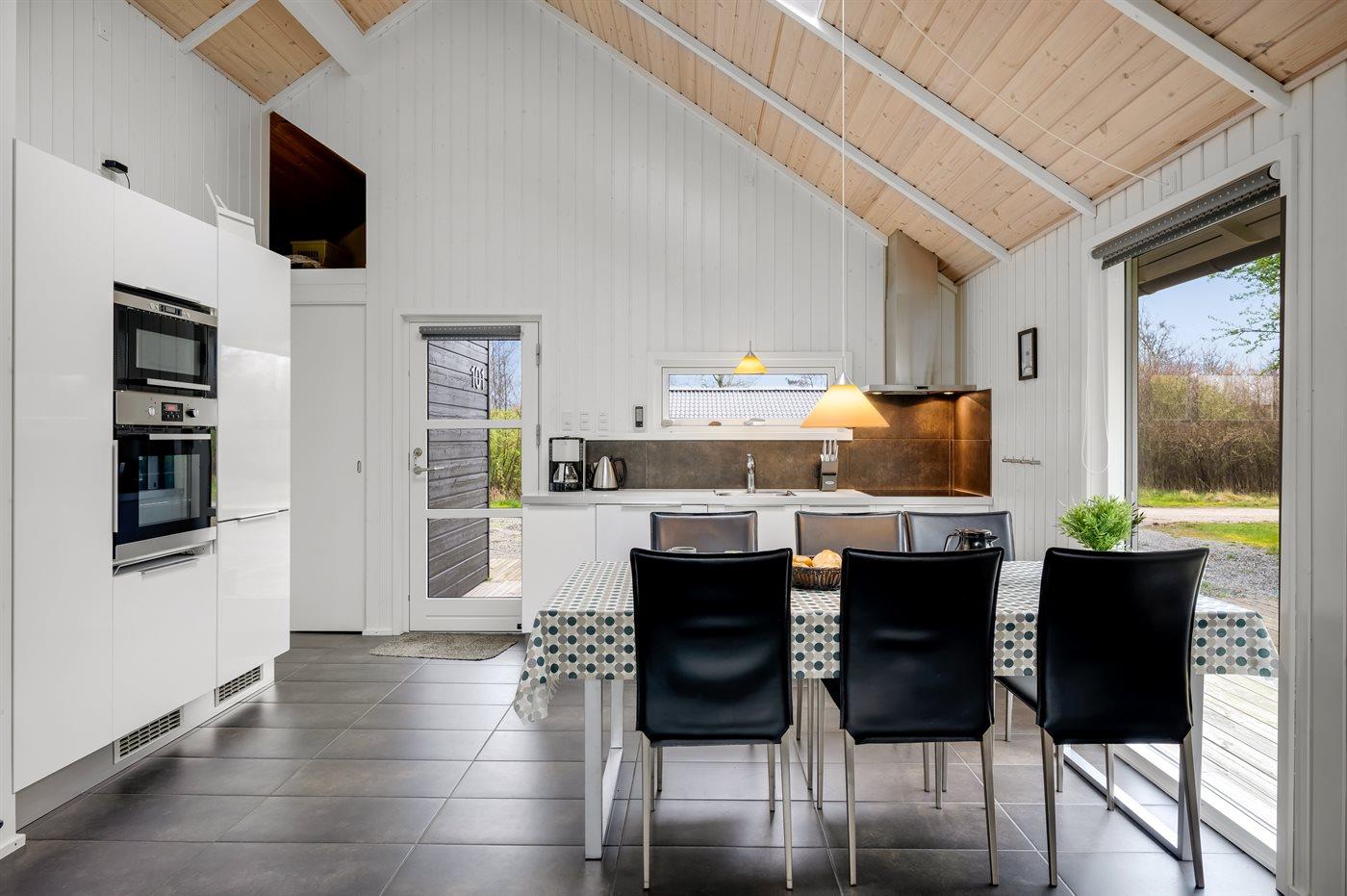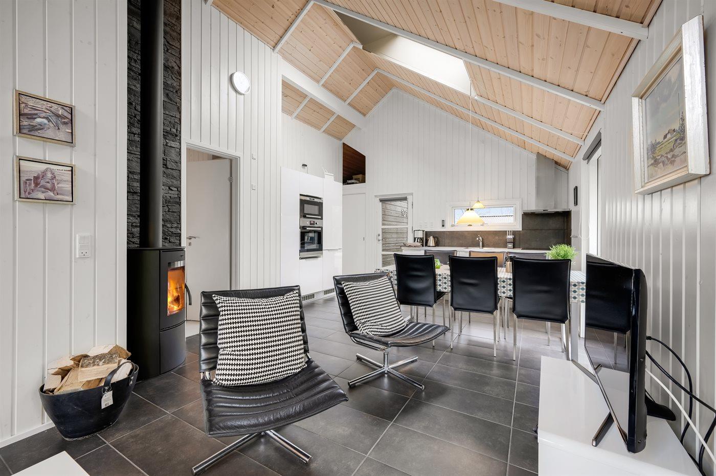 Ved det lille fiskerleje Bork havn ligger dette helt unikke sommerhus i træ fra 2010. Huset er opført i kvalitetstræ på en lille naturgrund. Til huset hører en delvist overdækket terrasse med havemøbler. Indvendig er der lyse vægge og gulve. Der er højt til loftet, hvilket giver en god rumfornemmelse. Huset er flot indrettet med øje for de små detaljer, som gør huset hyggeligt. Badeværelse med gulvvarme og bruser. Køkkenet er kombineret med stuen og udstyret med opvaskemaskine, fryser samt komfur med varmluftovn og keramiske kogeplader. Stuen indeholder brændeovn, stereoanlæg med CD-afspiller, DVD-afspiller samt TV med parabol (digital). Desuden gratis, trådløs internetforbindelse til rådighed. 2 dejlige soveværelser med dobbeltseng. Praktisk gang med god plads til fod- og overtøj samt vaskemaskine og tørretumbler. Et dejligt sommerhus i et område med mange aktivitetsmuligheder og kun 10 min. kørsel fra Vesterhavet.