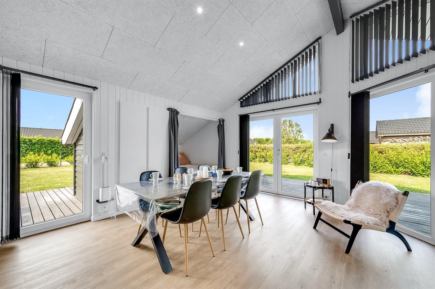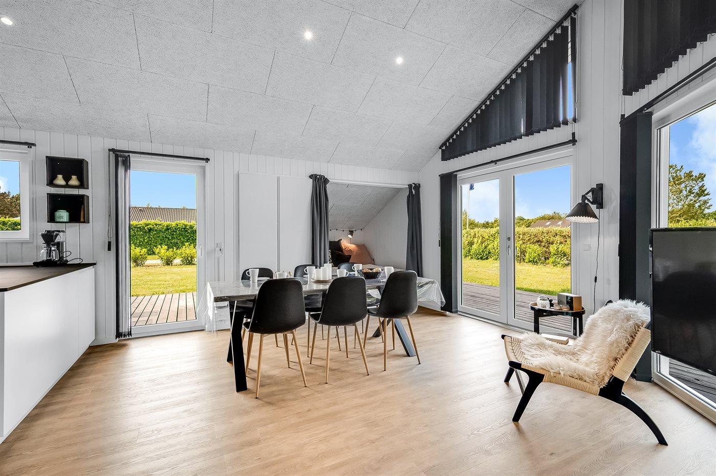 Dette skønne og hyggeligt indrettede sommerhus ligger på en stor naturgrund. Her kan I nyde den skønne natur med sit rige fugleliv. Tag også en tur ned til Bork Havn og oplev stemningen. Her er der også mulighed for at windsurfe, spise på et af de mange spisesteder eller shoppe i feriebyens mange butikker.