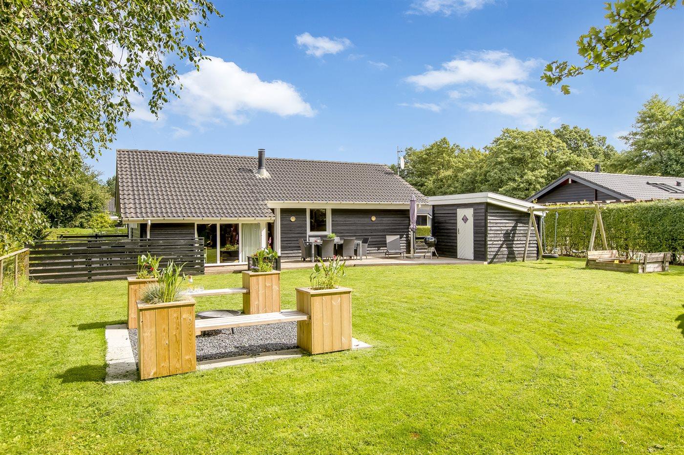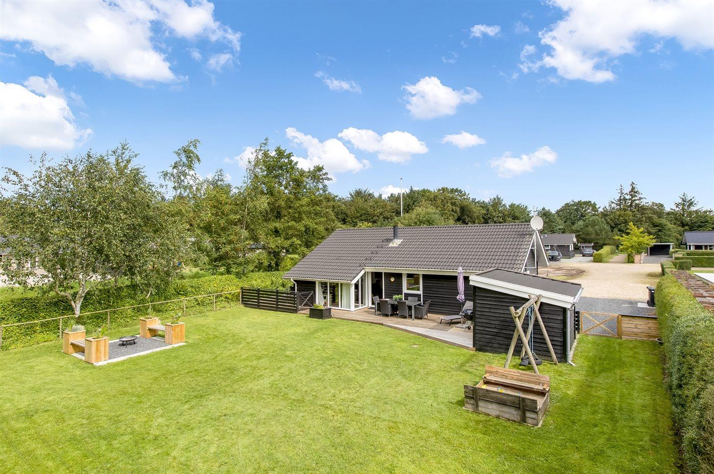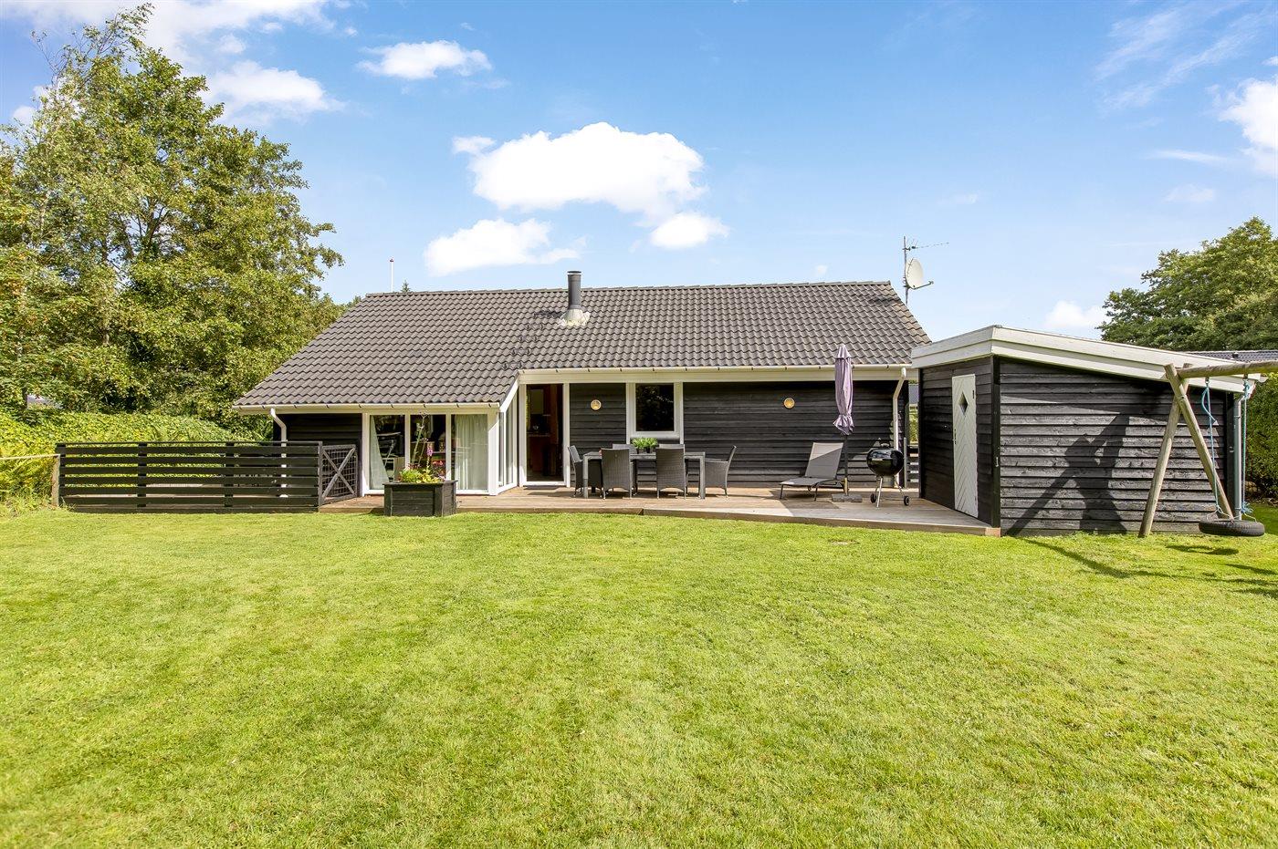 Ferieboligen er beliggende på en 810 m² stor naturgrund. Grunden er indhegnet. Der er 6550 m til havet. Der er 650 m til fjorden. Nærmeste forretning er beliggende i en afstand af 800 m. Til ferieboligen hører 80 m² terrasseareal. Der er redskabsrum. Gynge. Sandkasse. Parkering ved ferieboligen.