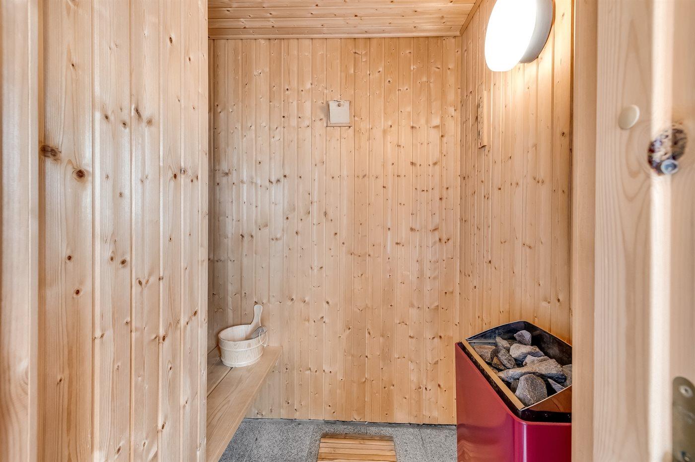 Der er 1 badeværelse med bruseniche og 1 toilet.. Der er gulvvarme på 1 badeværelse. I saunaen er der mulighed for afslapning.