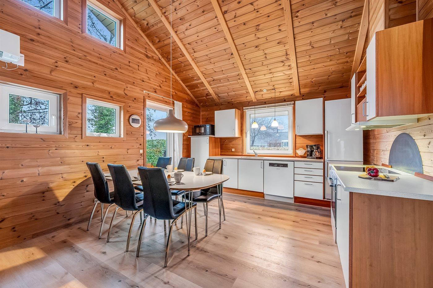 Køkkenet er udstyret med 1 køleskab. Der er 4 keramiske kogeplader, varmluftovn, mikrobølgeovn samt opvaskemaskine.